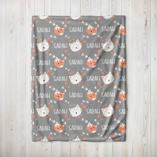 Personalized Gift | Custom Name Blanket For Kids | Kitty Cat BL-11