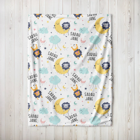 Personalized Gift | Custom Name Blanket For Kids | Happy Lion BL-16