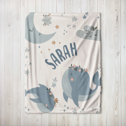 Personalized Gift | Custom Name Blanket For Kids | Magical Whale BL-19