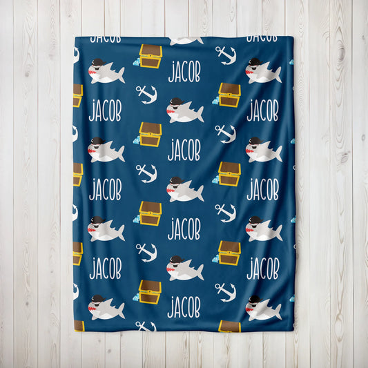 Personalized Gift | Custom Name Shark Pirate Blanket For Kids BL-12