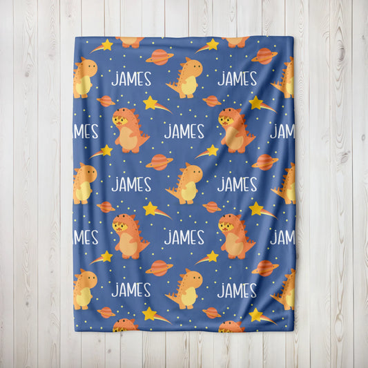 Personalized Gift | Custom Name Dinosaur and Space Blanket For Kids BL-10