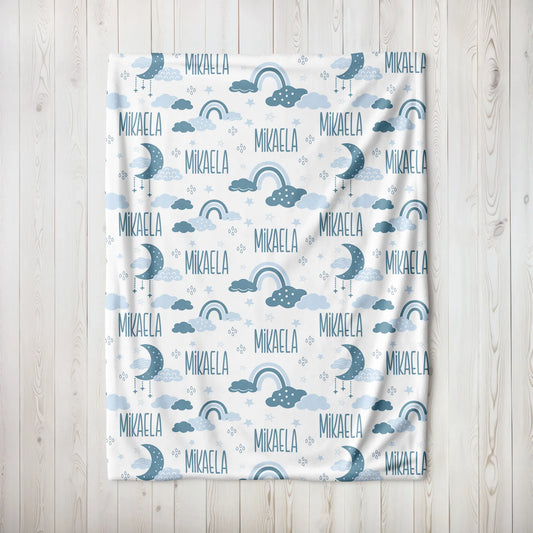 Personalized Gift | Custom Name Blue Rainbow Blanket For Kids BL-15