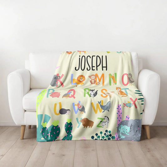 Personalized Gift | Custom Name Blanket For Kids | Alphabet and Animals BL-18