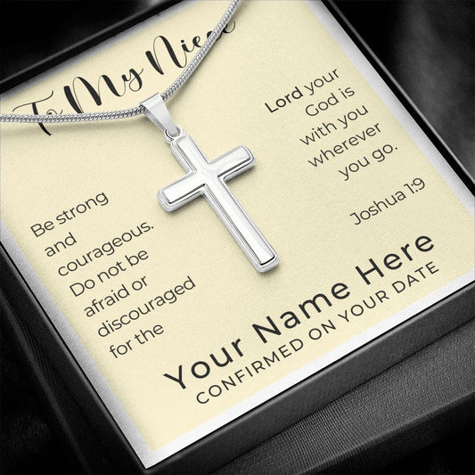 Personalized Confirmation Gift For Boy - Godson | Be Strong Cross Necklace 0826T2SSCN