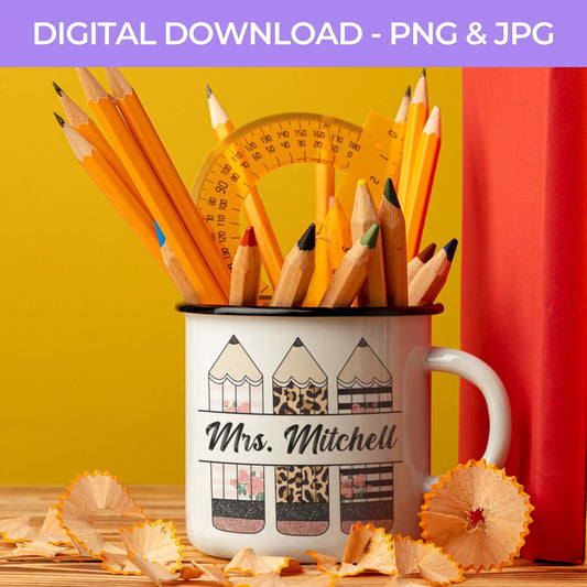 Back To School | Pencil Name Frame PNG, JPG Teacher School, Digital Download 055