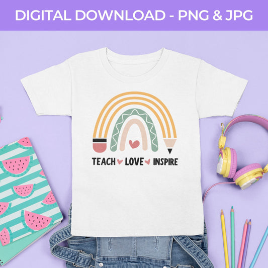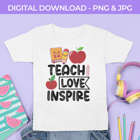 Back To School | Teach Love Inspire PNG, JPG Teacher School, Digital Download 065