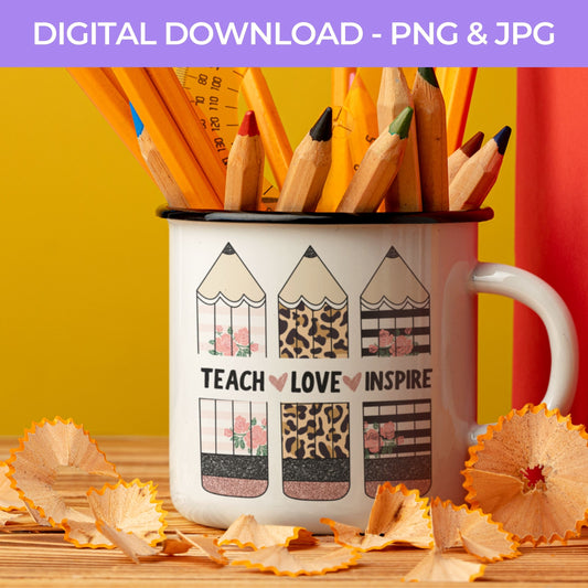 Back To School | Teach Love Inspire PNG, JPG Teacher School, Digital Download 066