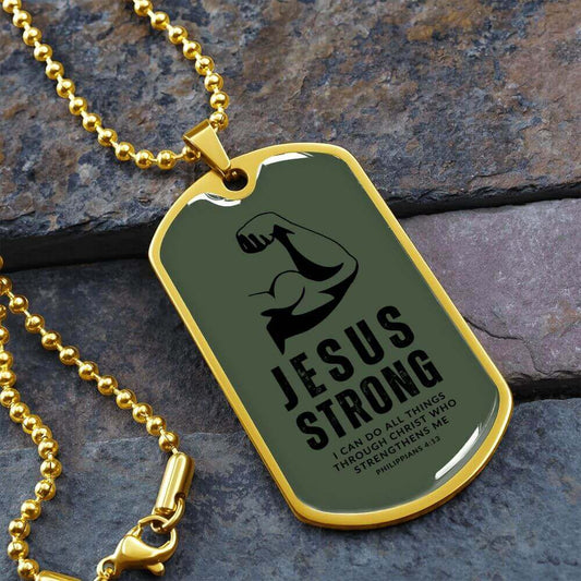 Christian Gifts For Men - Jesus Strong Dog Tag Necklace 13DTN