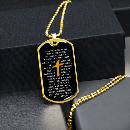 Men's Cross Dog Tag Necklace - Lord's Prayer Dog Tag 01DTN