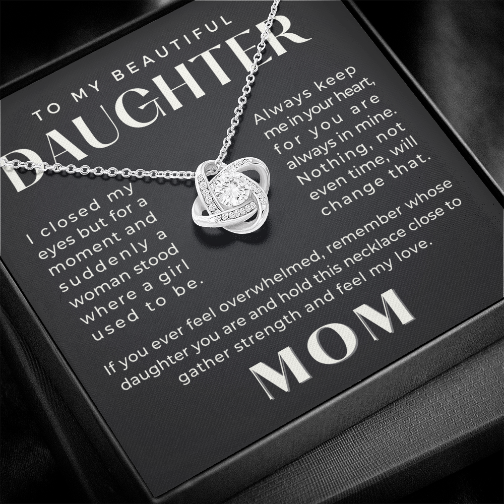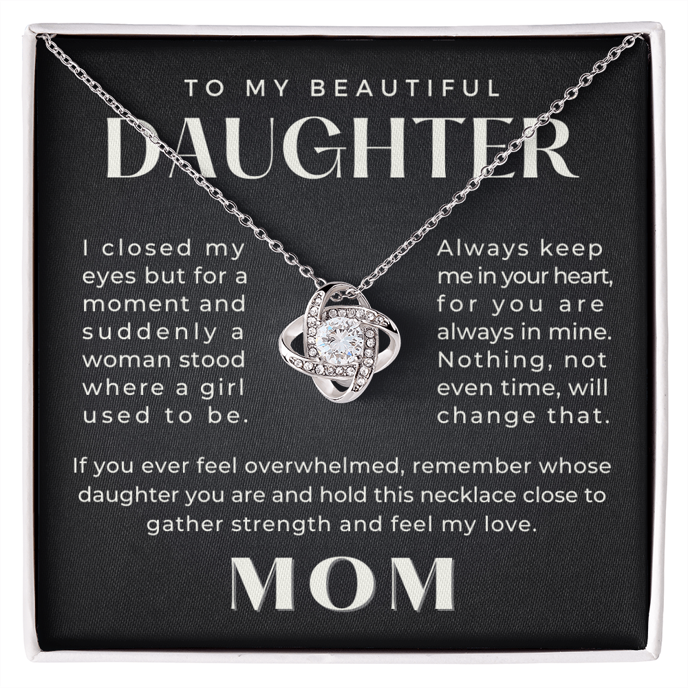 I closed my eyes but for a moment and suddenly a woman stood where a girl used to be. Always keep me in your heart, for you are always in mine. Nothing, not even the passage of time, will change that. If you ever feel overwhelmed, remember whose daughter you are and hold this necklace close to gather strength and feel my love.