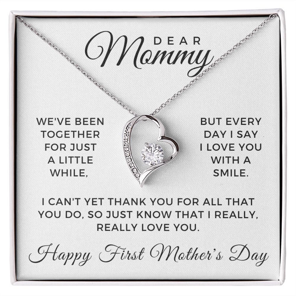 Celebrate your Mom this Mother's Day with this stunning necklace. Crafted in luxurious 14k white gold over stainless steel, its sleek yet eye-catching design perfectly conveys your love and appreciation. The pendant necklace comes in an elegant gift box with a sweet message that will surely make your mom feel loved and appreciated!