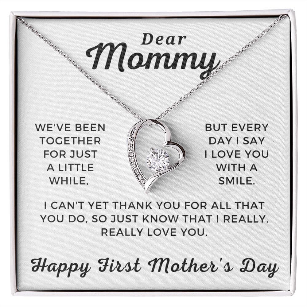 Celebrate your Mom this Mother's Day with this stunning necklace. Crafted in luxurious 14k white gold over stainless steel, its sleek yet eye-catching design perfectly conveys your love and appreciation. The pendant necklace comes in an elegant gift box with a sweet message that will surely make your mom feel loved and appreciated!!
