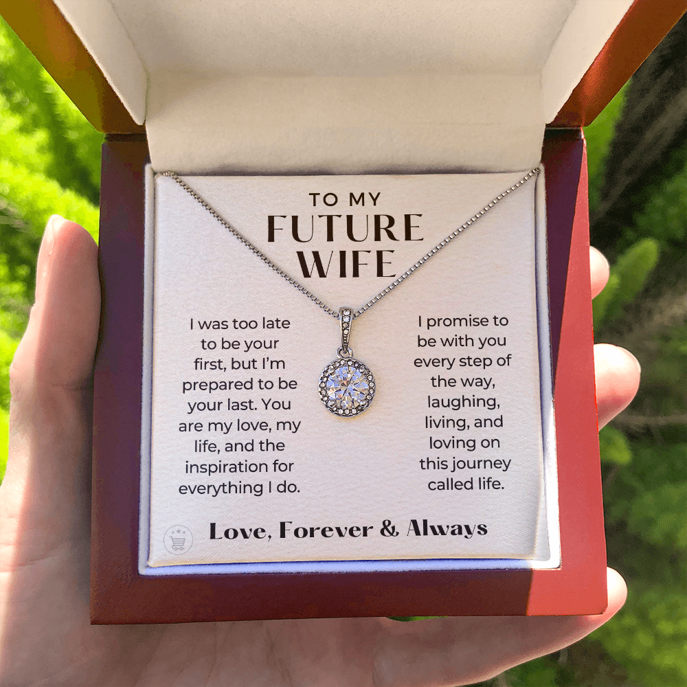 If you’re looking for a unique and special gift to give your future wife on a special occasion, then look no further! This beautiful necklace is crafted with love and thoughtfulness. The pendant necklace comes in an elegant gift box with a sweet message that will surely make your future wife feel loved and appreciated!