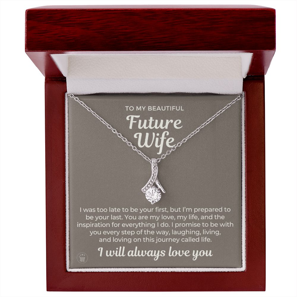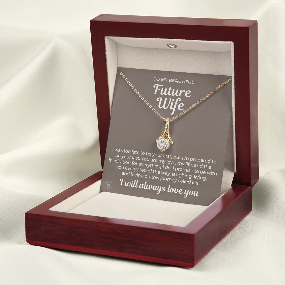 If you’re looking for a unique and special gift to give your future wife on a special occasion, then look no further! This beautiful necklace is crafted with love and thoughtfulness. The pendant necklace comes in an elegant gift box with a sweet message that will surely make your future wife feel loved and appreciated!