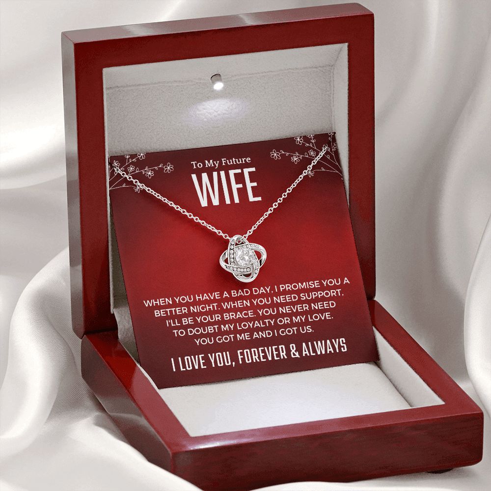 If you’re looking for a unique and special gift to give your future wife on a special occasion. This beautiful necklace is crafted with love and thoughtfulness. The pendant necklace comes in an elegant gift box with a sweet message that will surely make your future wife feel loved and appreciated!