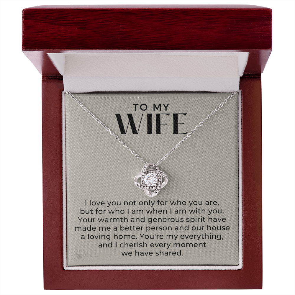 I love you not only for who you are, but for who I am when I am with you. Your warmth and generous spirit have made me a better person and our house a loving home. You're my everything, and I cherish every moment we have shared.