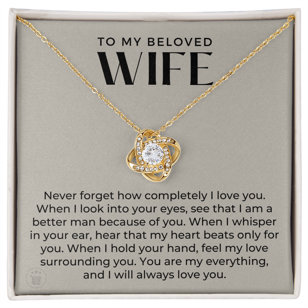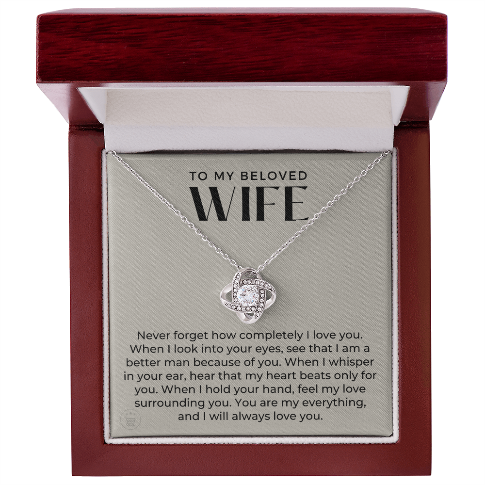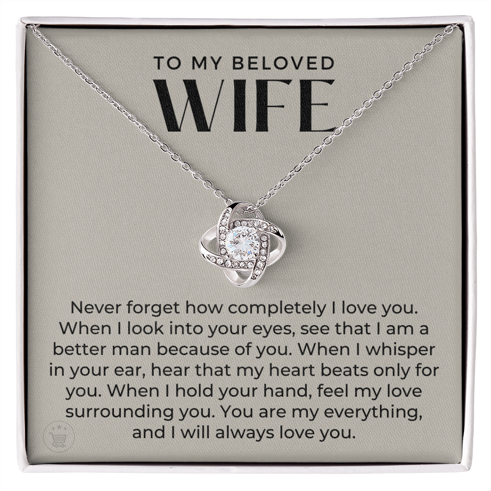 Never forget how completely I love you. When I look into your eyes, see that I am a better man because of you. When I whisper in your ear, hear that my heart beats only for you. When I hold your hand, feel my love surrounding you. You are my everything, and I will always love you.