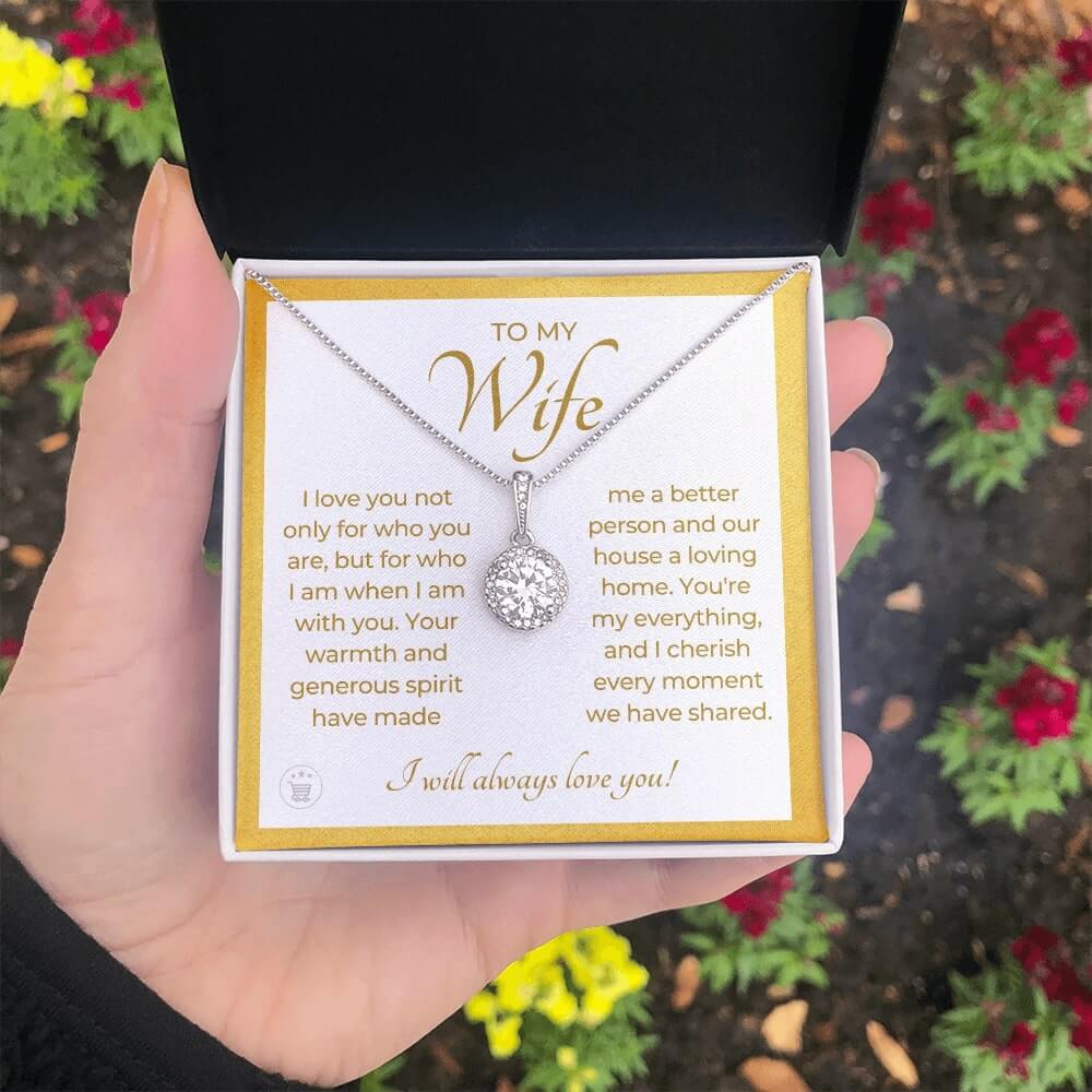 If you’re looking for a unique and special gift to give your wife on a special occasion, then look no further! This beautiful necklace is crafted with love and thoughtfulness. The pendant necklace comes in an elegant gift box with a sweet message that will surely make your wife feel loved and appreciated!