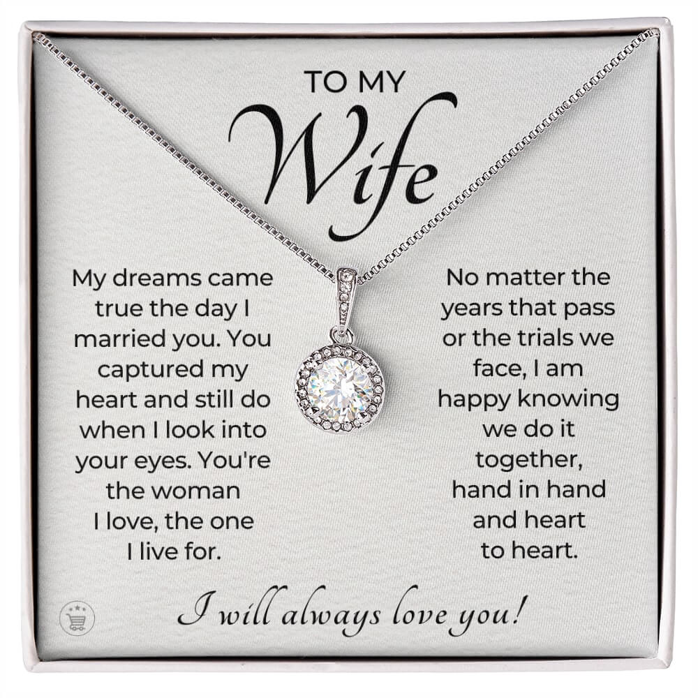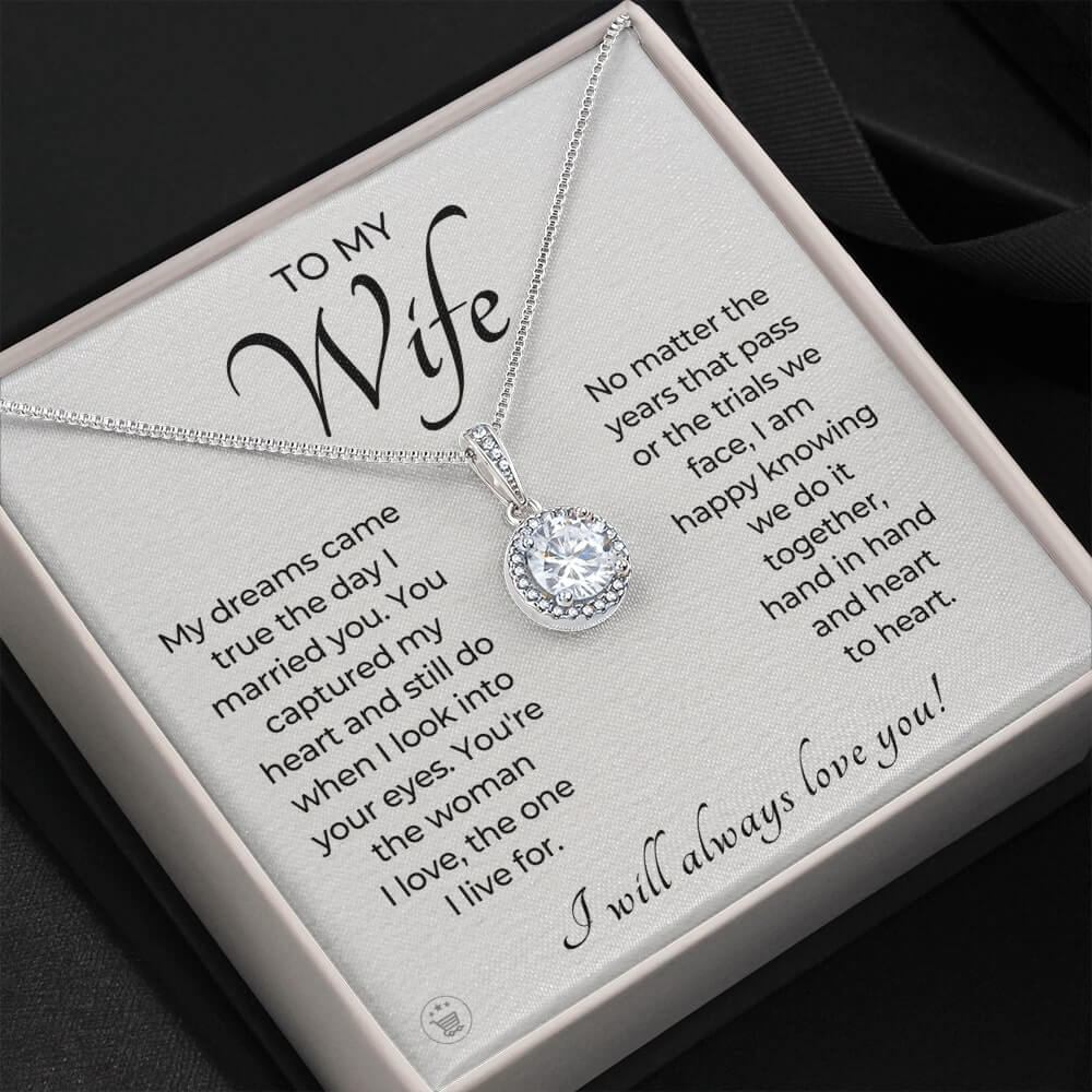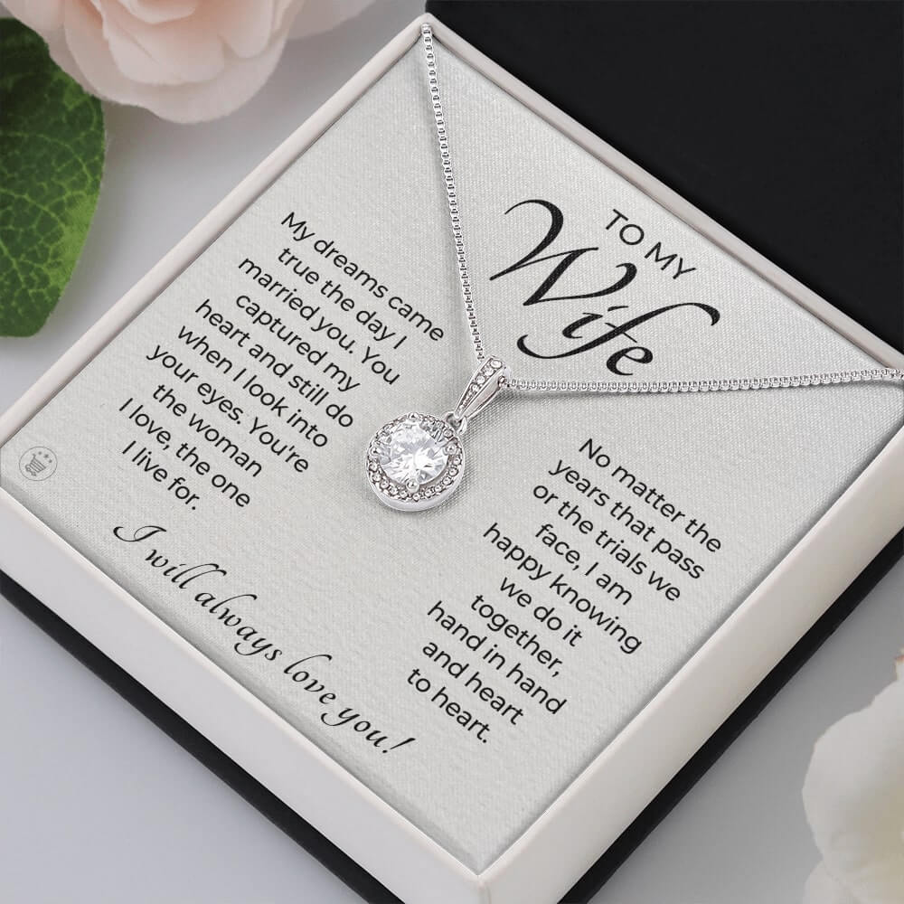 If you’re looking for a unique and special gift to give your wife on a special occasion, then look no further! This beautiful necklace is crafted with love and thoughtfulness. The pendant necklace comes in an elegant gift box with a sweet message that will surely make your wife feel loved and appreciated!