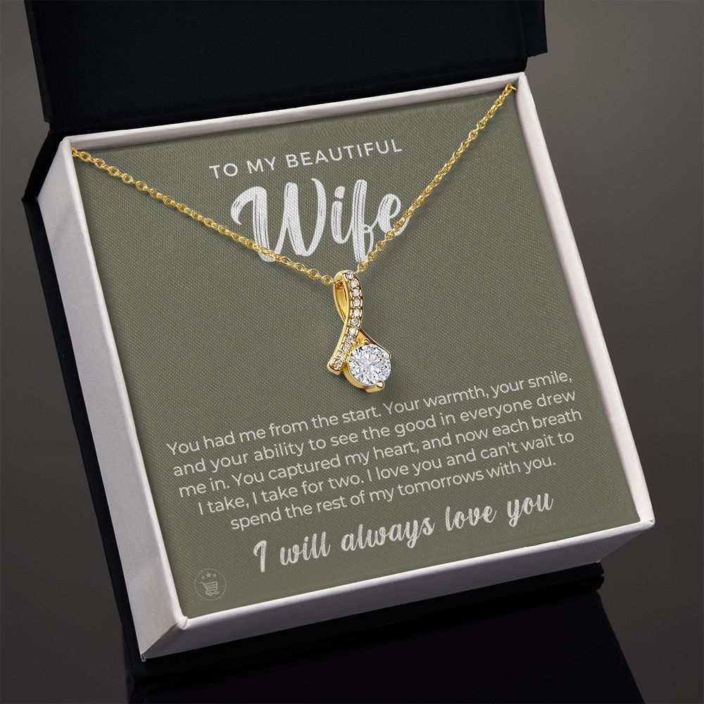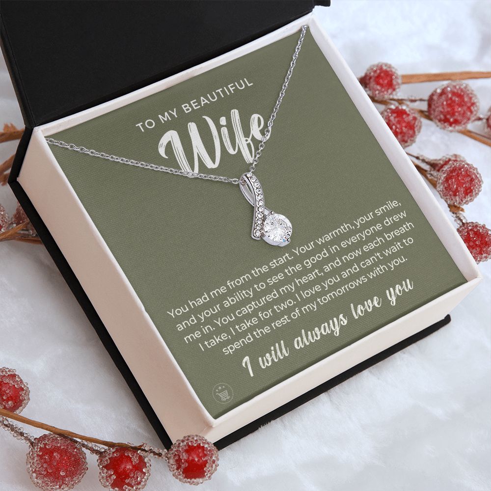 If you’re looking for a unique and special gift to give your wife on a special occasion, then look no further! This beautiful necklace is crafted with love and thoughtfulness. The pendant necklace comes in an elegant gift box with a sweet message that will surely make your wife feel loved and appreciated!