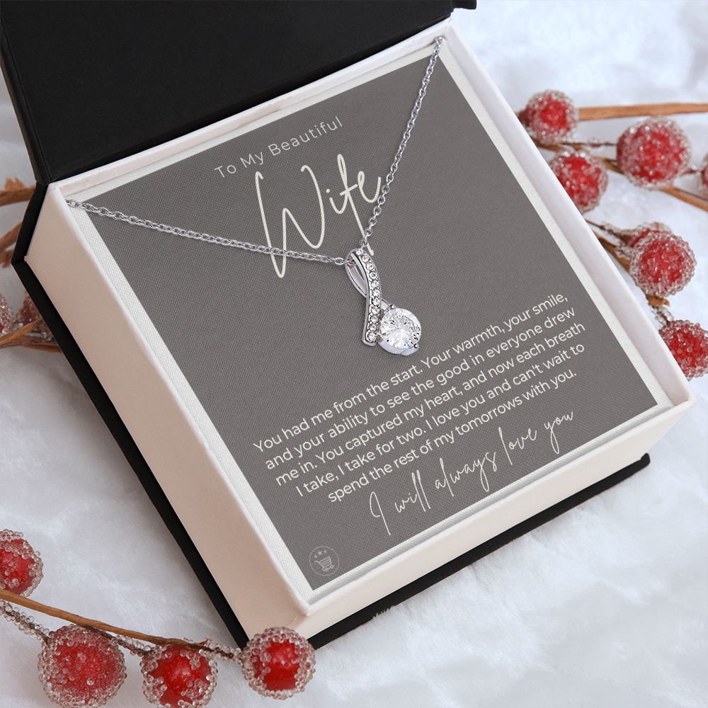 If you’re looking for a unique and special gift to give your wife on a special occasion, then look no further! This beautiful necklace is crafted with love and thoughtfulness. The pendant necklace comes in an elegant gift box with a sweet message that will surely make your wife feel loved and appreciated!