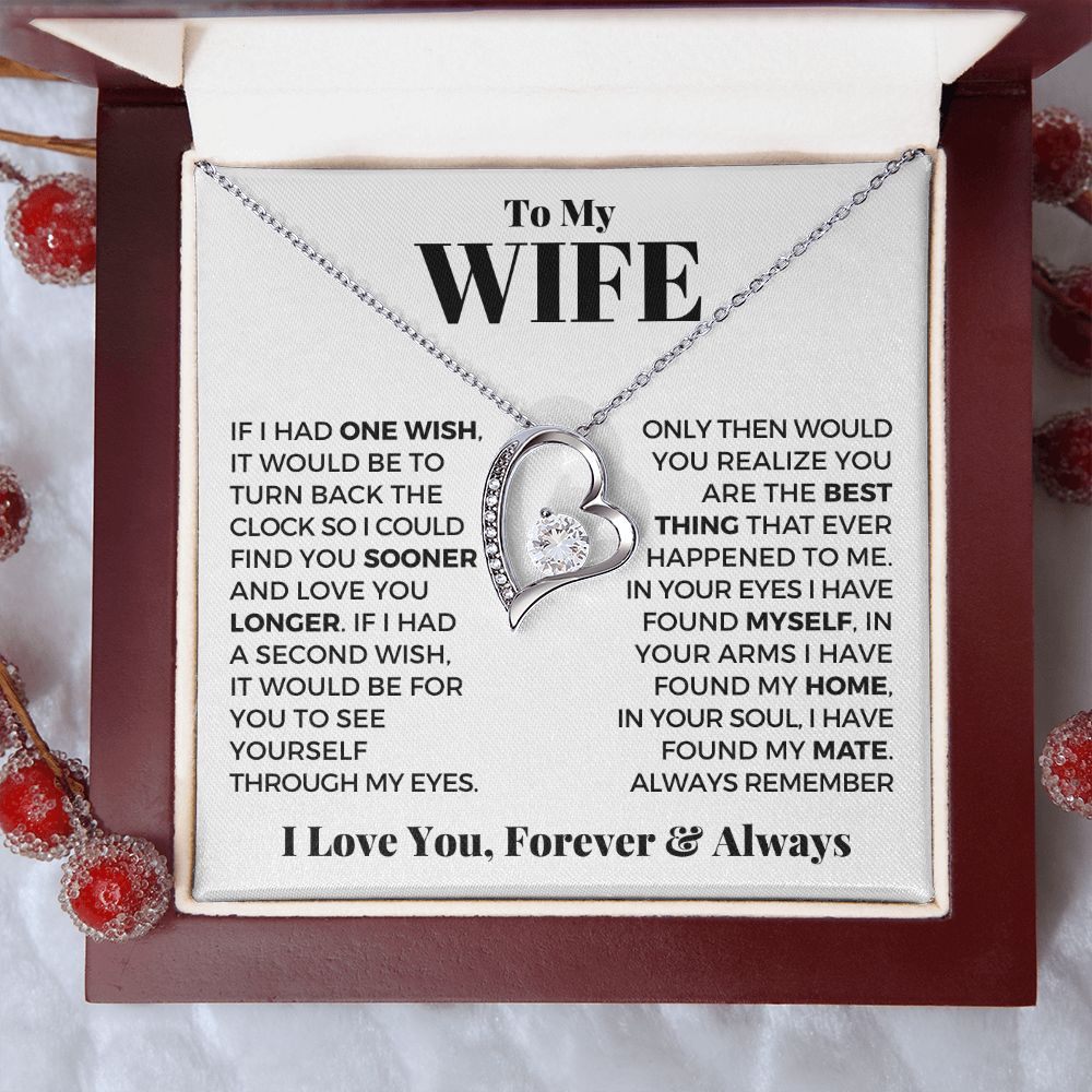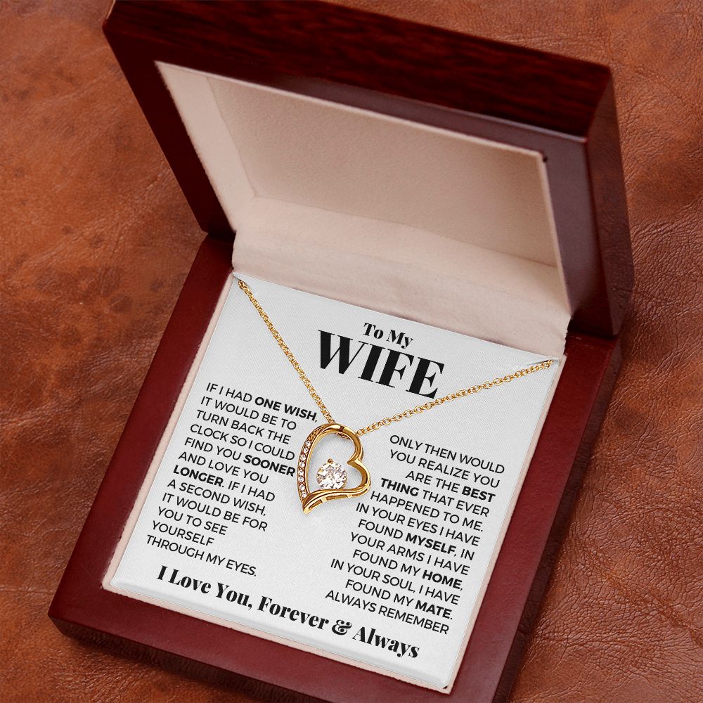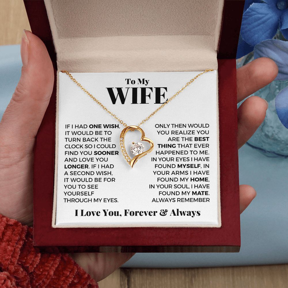 Give your wife a gift she’ll love and remember, a beautiful necklace that captures your heart. Your wife can wear it as a reminder of how much you love her and that you will always be there. The pendant necklace comes in an elegant gift box with a sweet message that will surely make your wife feel loved and appreciated!