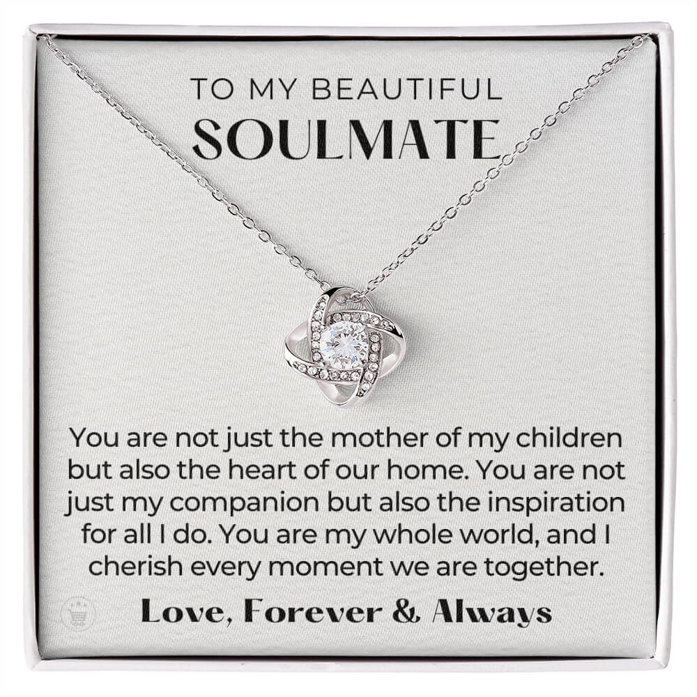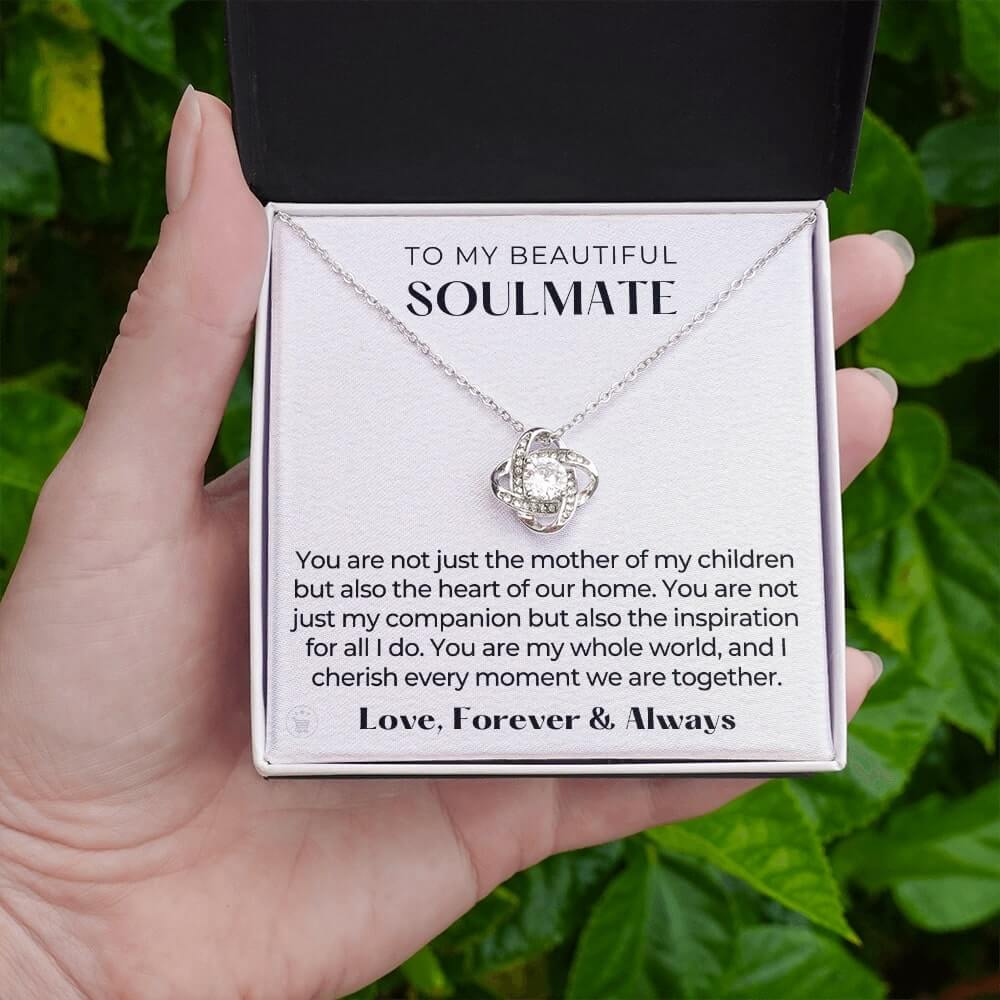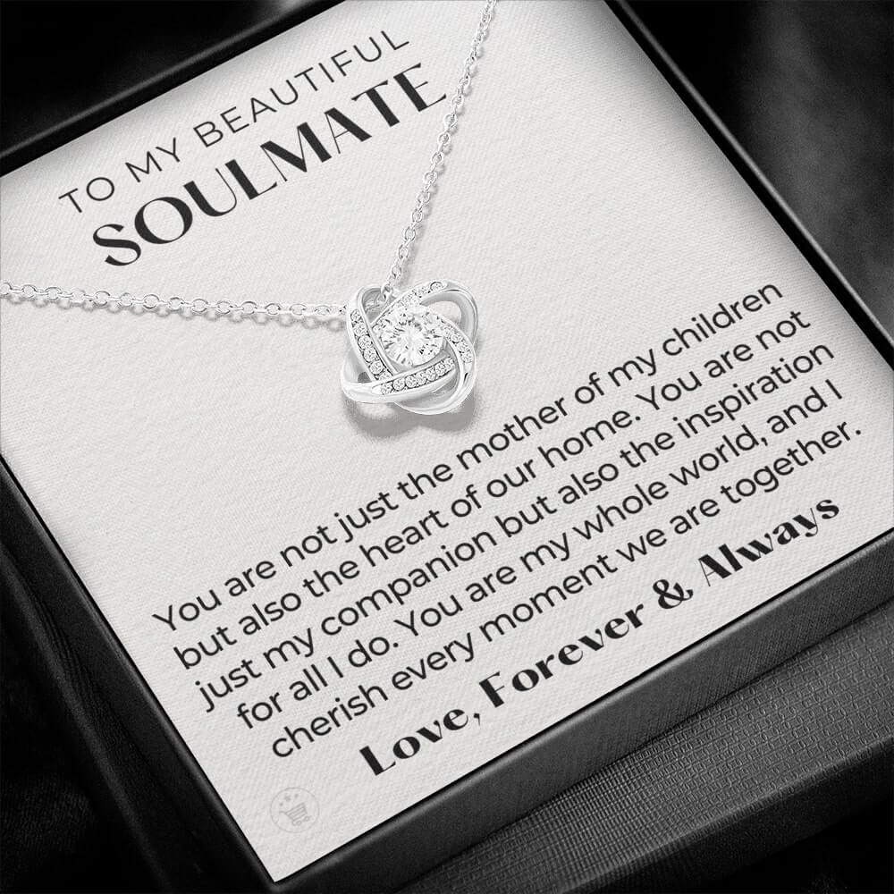 If you’re looking for a unique and special gift to give your soulmate on a special occasion, then look no further! This beautiful necklace is crafted with love and thoughtfulness. The pendant necklace comes in an elegant gift box with a sweet message that will surely make your soulmate feel loved and appreciated!