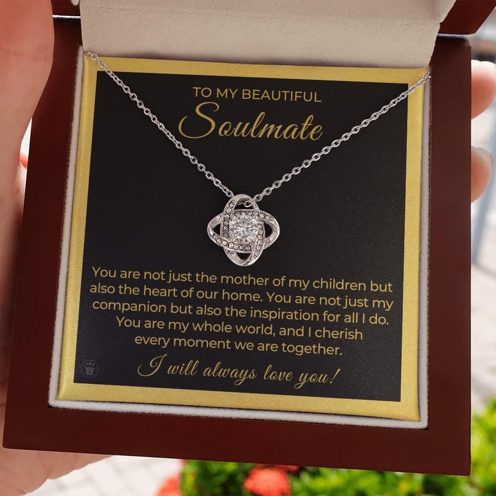 If you’re looking for a unique and special gift to give your soulmate on a special occasion, then look no further! This beautiful necklace is crafted with love and thoughtfulness. The pendant necklace comes in an elegant gift box with a sweet message that will surely make your soulmate feel loved and appreciated!