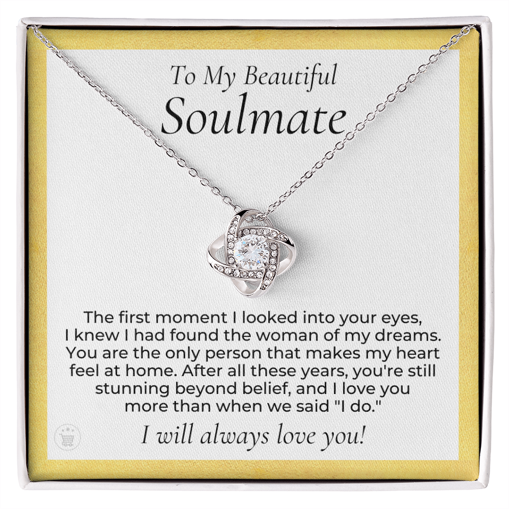 If you’re looking for a unique and special gift to give your soulmate on a special occasion, then look no further! This beautiful necklace is crafted with love and thoughtfulness. The pendant necklace comes in an elegant gift box with a sweet message that will surely make your soulmate feel loved and appreciated!