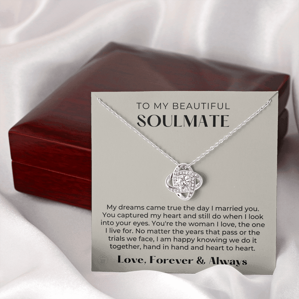 If you’re looking for a unique and special gift to give your soulmate on a special occasion, then look no further! This beautiful necklace is crafted with love and thoughtfulness. The pendant necklace comes in an elegant gift box with a sweet message that will surely make your soulmate feel loved and appreciated!