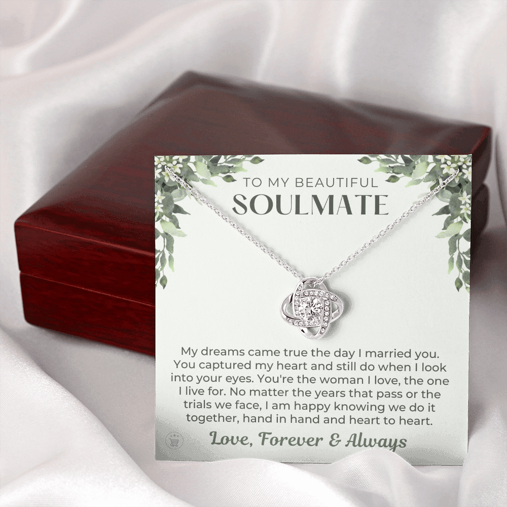 If you’re looking for a unique and special gift to give your soulmate on a special occasion, then look no further! This beautiful necklace is crafted with love and thoughtfulness. The pendant necklace comes in an elegant gift box with a sweet message that will surely make your soulmate feel loved and appreciated!
