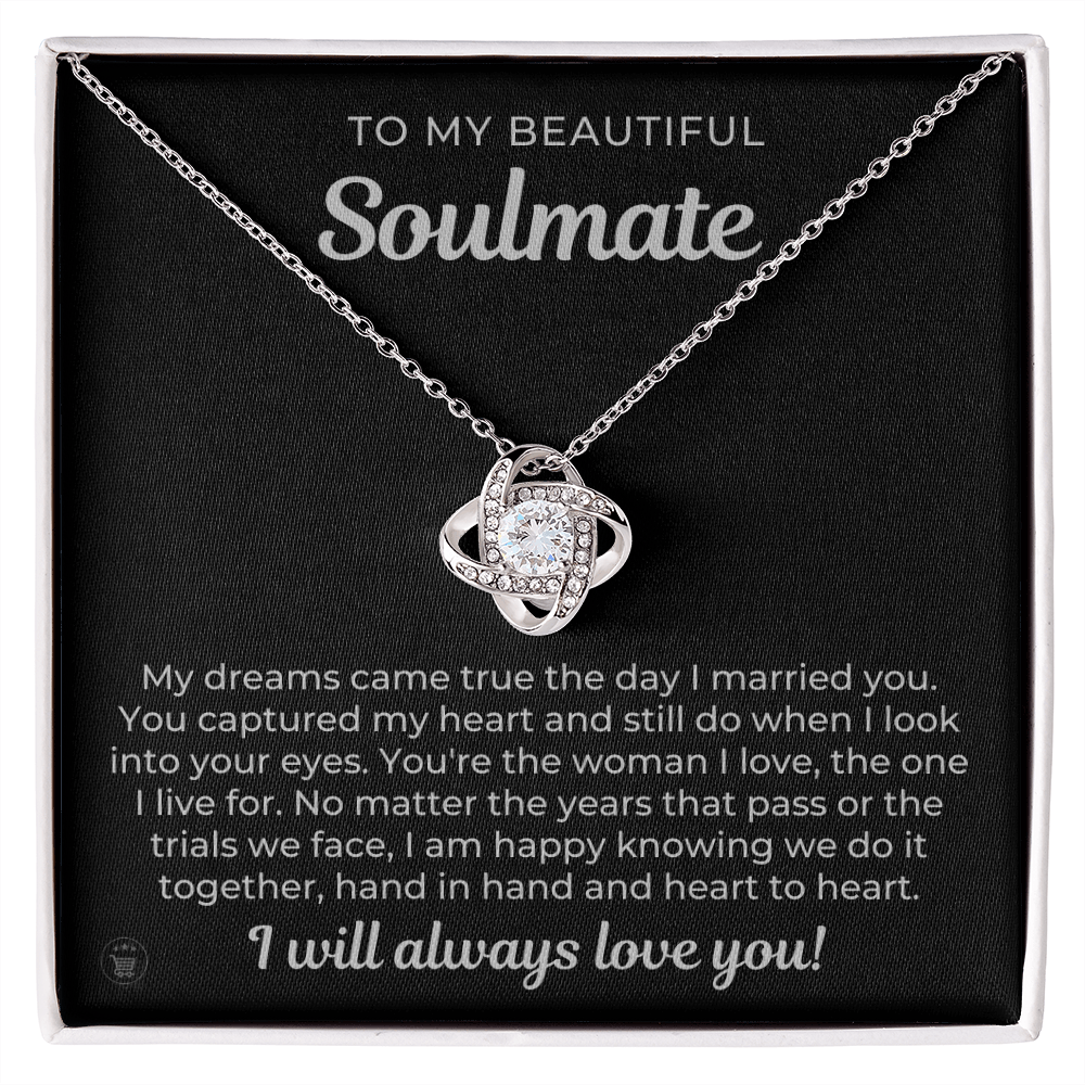 If you’re looking for a unique and special gift to give your soulmate on a special occasion, then look no further! This beautiful necklace is crafted with love and thoughtfulness. The pendant necklace comes in an elegant gift box with a sweet message that will surely make your soulmate feel loved and appreciated!