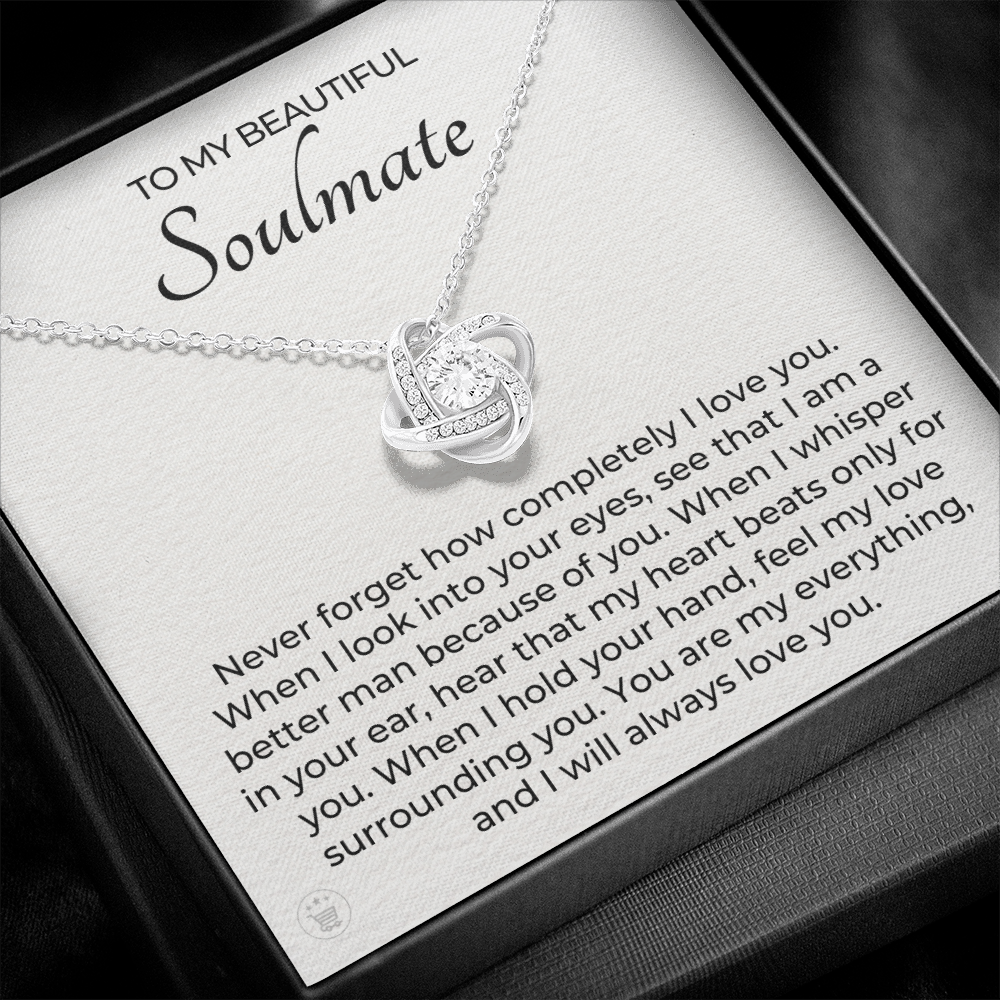 If you’re looking for a unique and special gift to give your soulmate on a special occasion, then look no further! This beautiful necklace is crafted with love and thoughtfulness. The pendant necklace comes in an elegant gift box with a sweet message that will surely make your soulmate feel loved and appreciated!