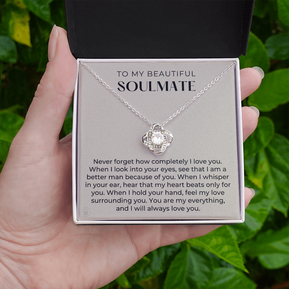If you’re looking for a unique and special gift to give your soulmate on a special occasion, then look no further! This beautiful necklace is crafted with love and thoughtfulness. The pendant necklace comes in an elegant gift box with a sweet message that will surely make your soulmate feel loved and appreciated!