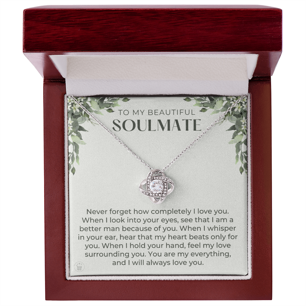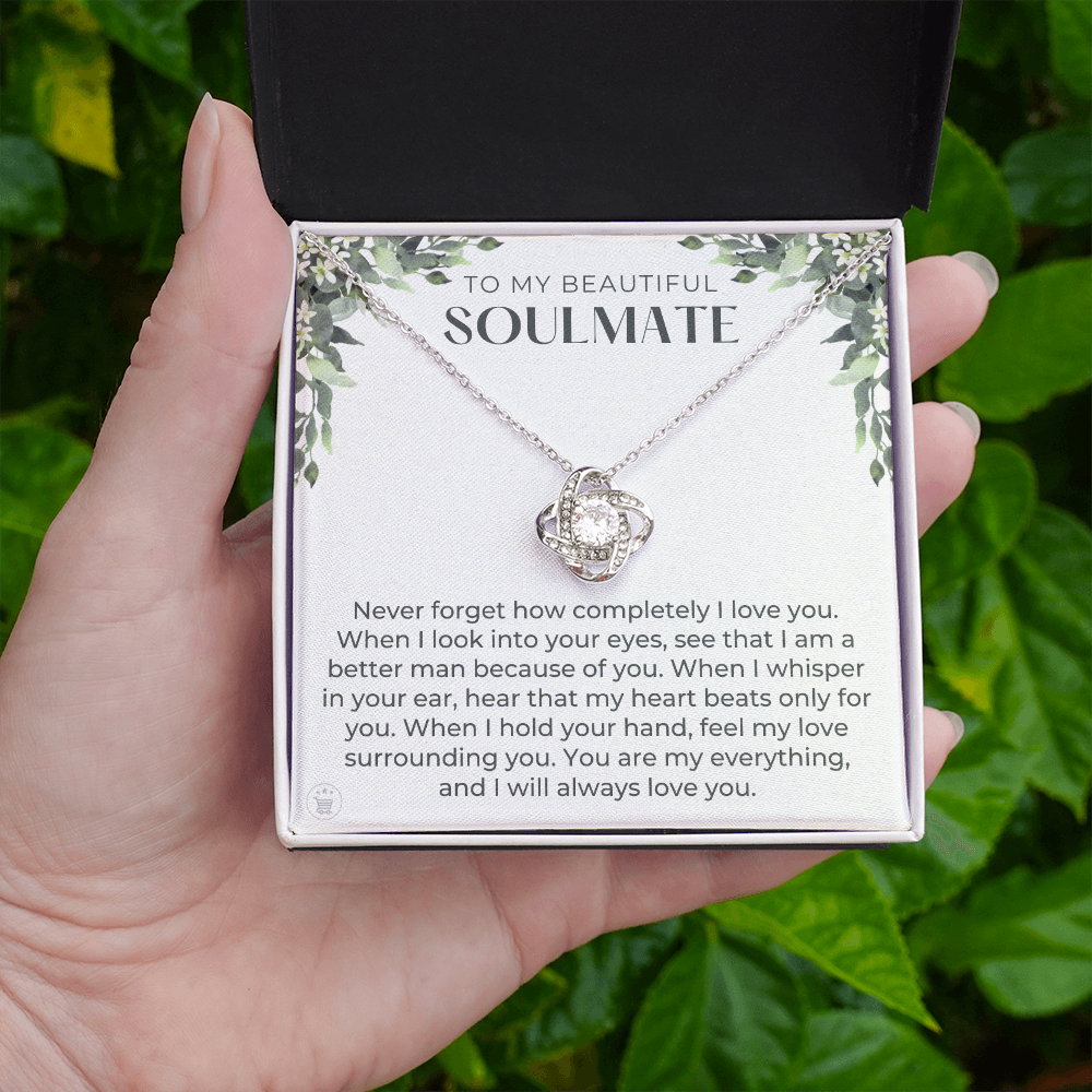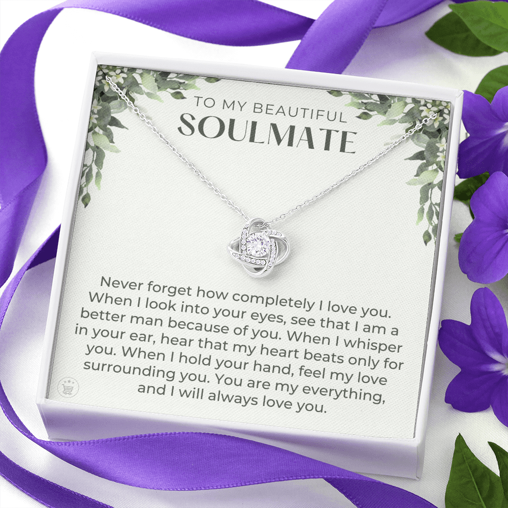 If you’re looking for a unique and special gift to give your soulmate on a special occasion, then look no further! This beautiful necklace is crafted with love and thoughtfulness. The pendant necklace comes in an elegant gift box with a sweet message that will surely make your soulmate feel loved and appreciated!