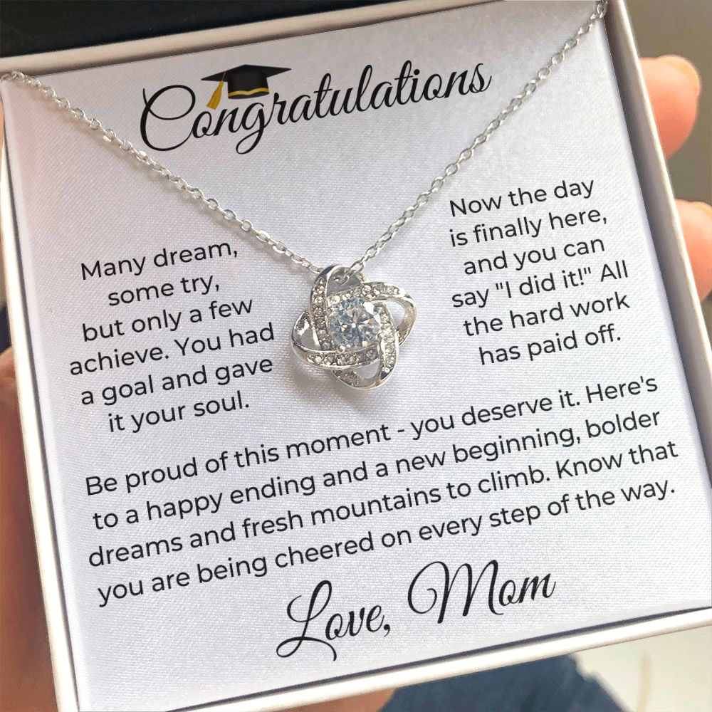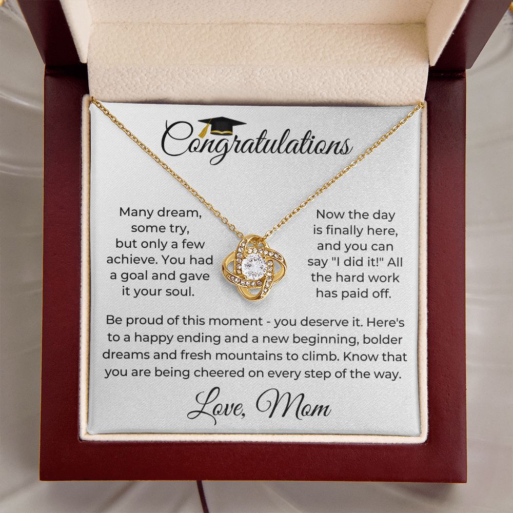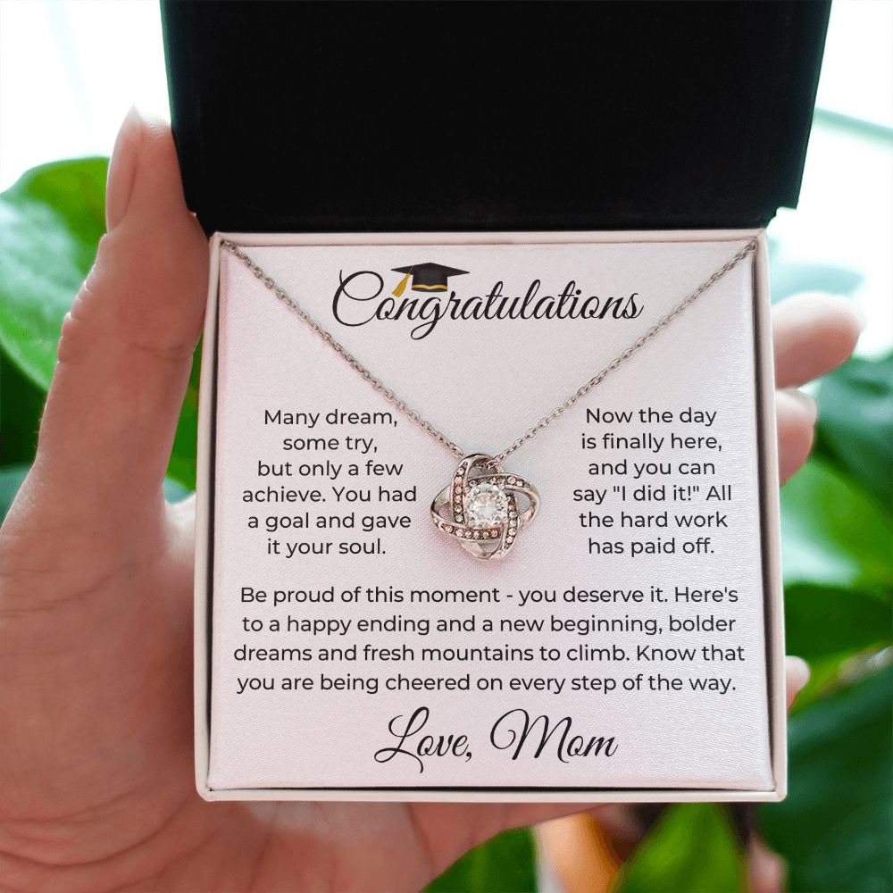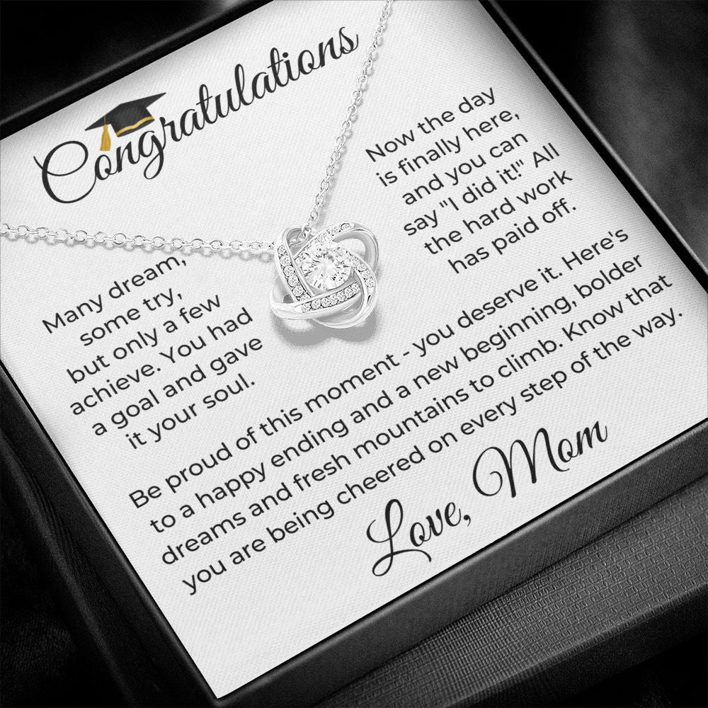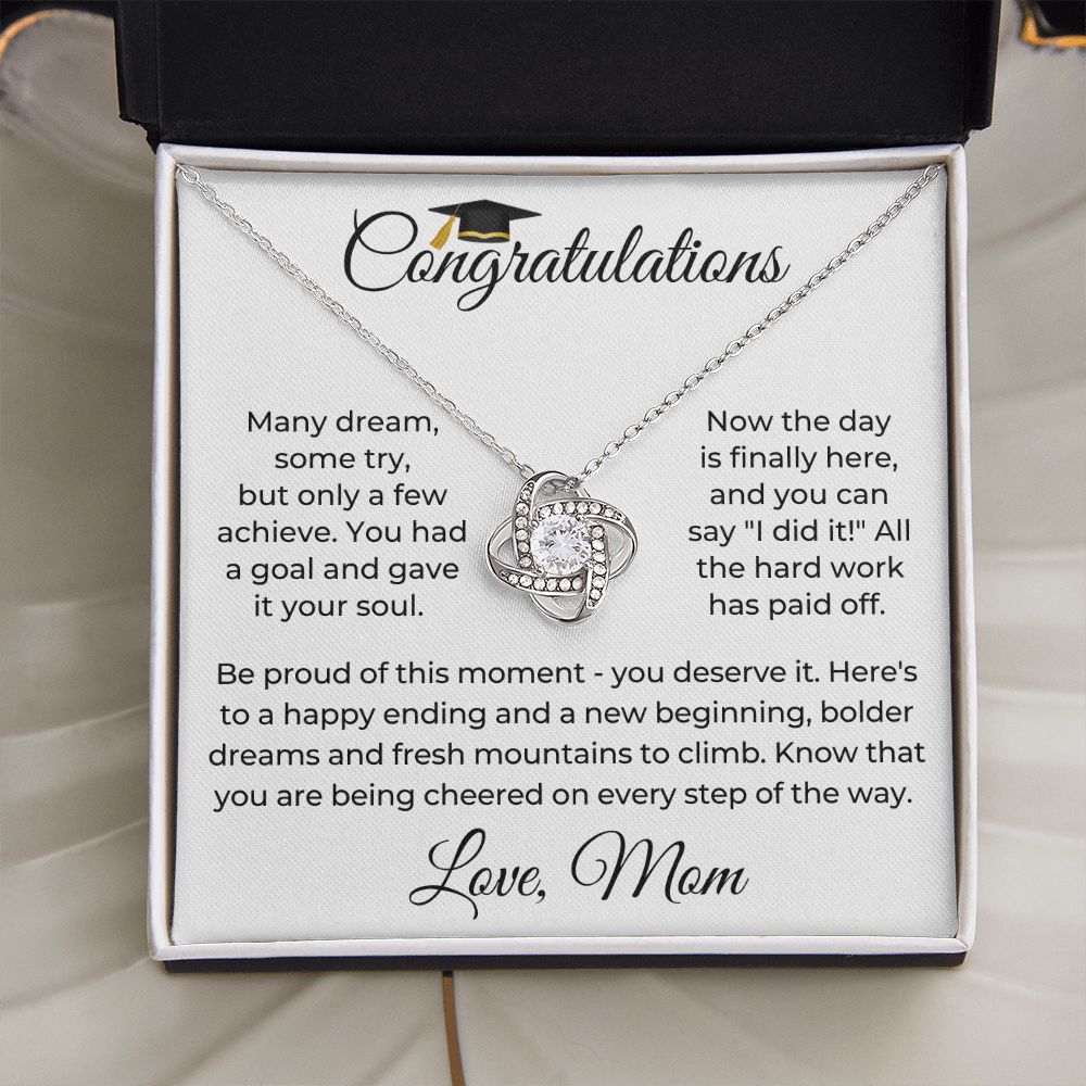 Show your appreciation for your daughter's hard work and dedication with our necklace with a message card. This meaningful college graduation gift for her comes in a stylish design and is beautifully packaged with a special message. It's the perfect way to say congratulations!