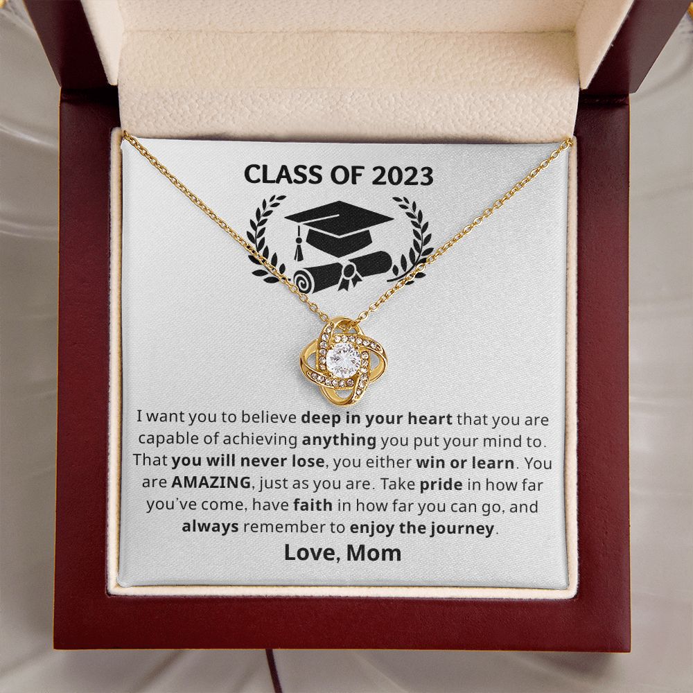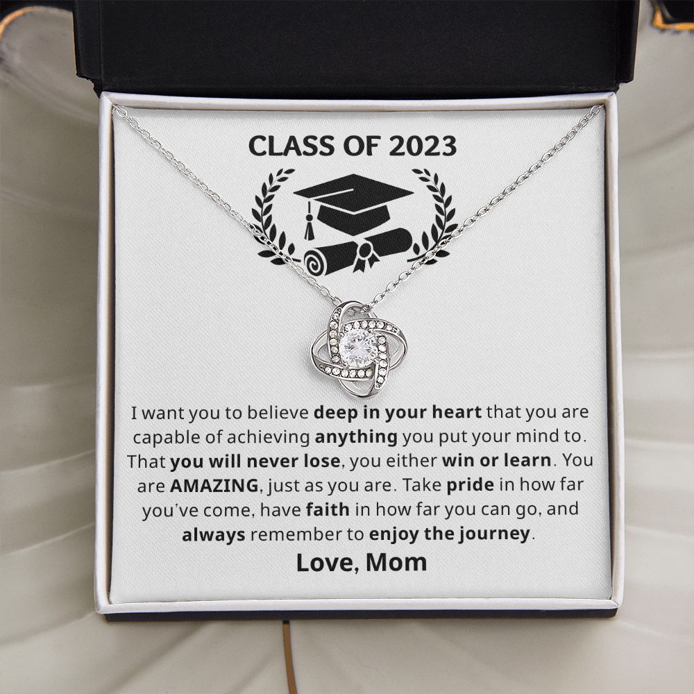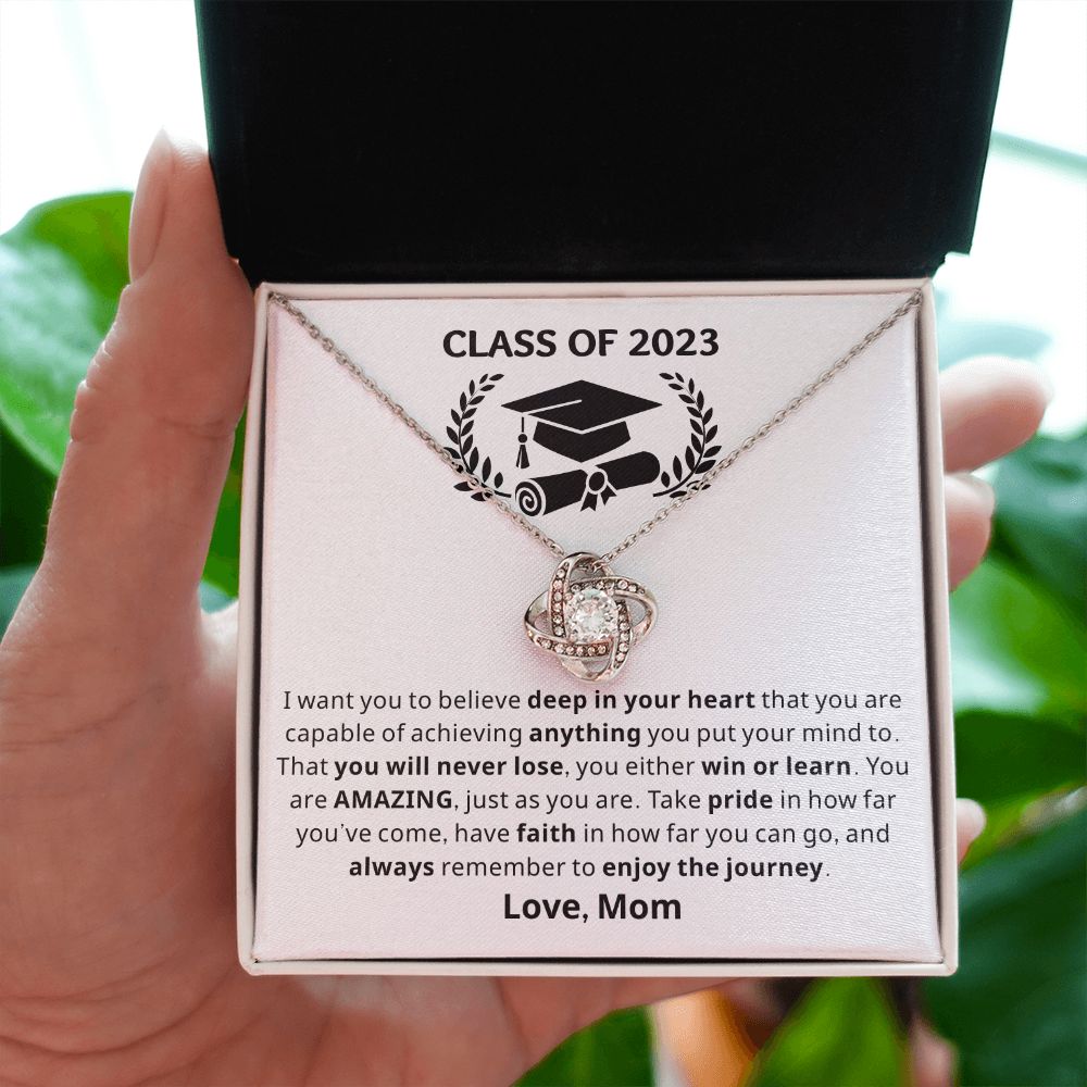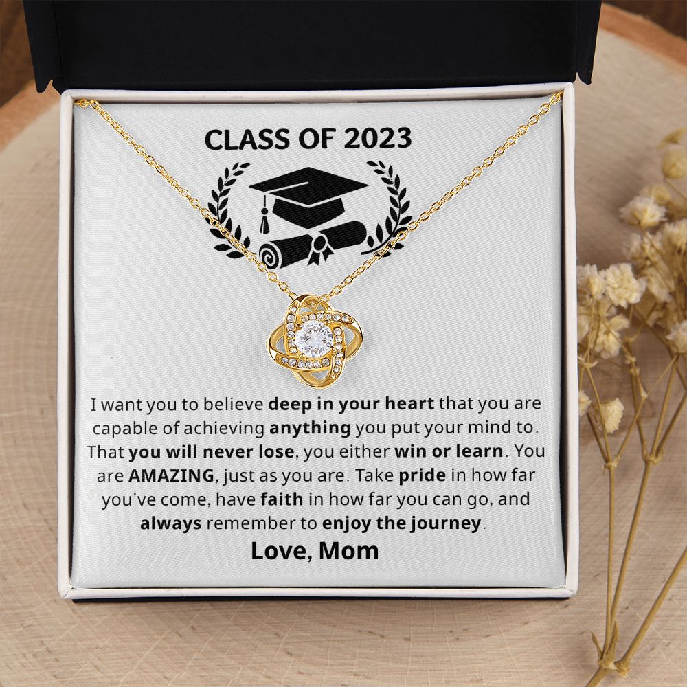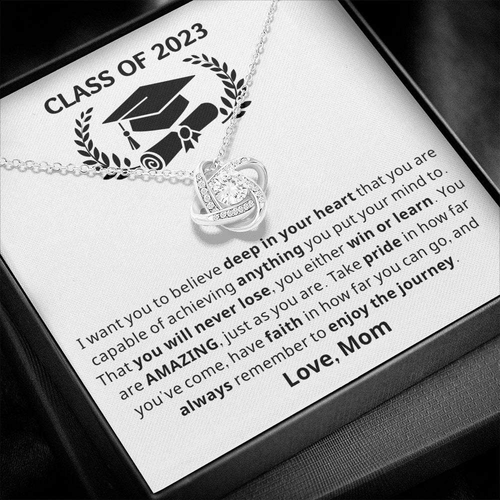 Show your appreciation for your daughter's hard work and dedication with our necklace with a message card. This meaningful college graduation gift for her comes in a stylish design and is beautifully packaged with a special message. It's the perfect way to say congratulations!