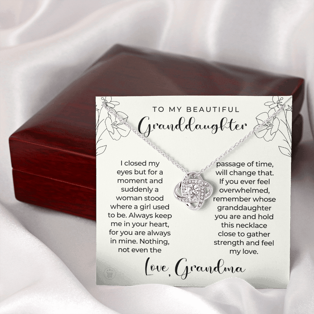 Give your granddaughter a gift she’ll love and remember, a beautiful necklace that captures your heart. Your granddaughter can wear it as a reminder of how much you love her and that you will always be there. The pendant necklace comes in an elegant gift box with a sweet message that will surely make your granddaughter feel loved and appreciated!