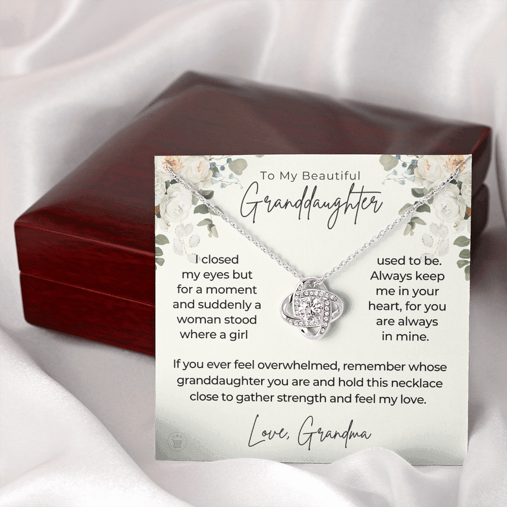 Give your granddaughter a gift she’ll love and remember, a beautiful necklace that captures your heart. Your granddaughter can wear it as a reminder of how much you love her and that you will always be there. The pendant necklace comes in an elegant gift box with a sweet message that will surely make your granddaughter feel loved and appreciated!
