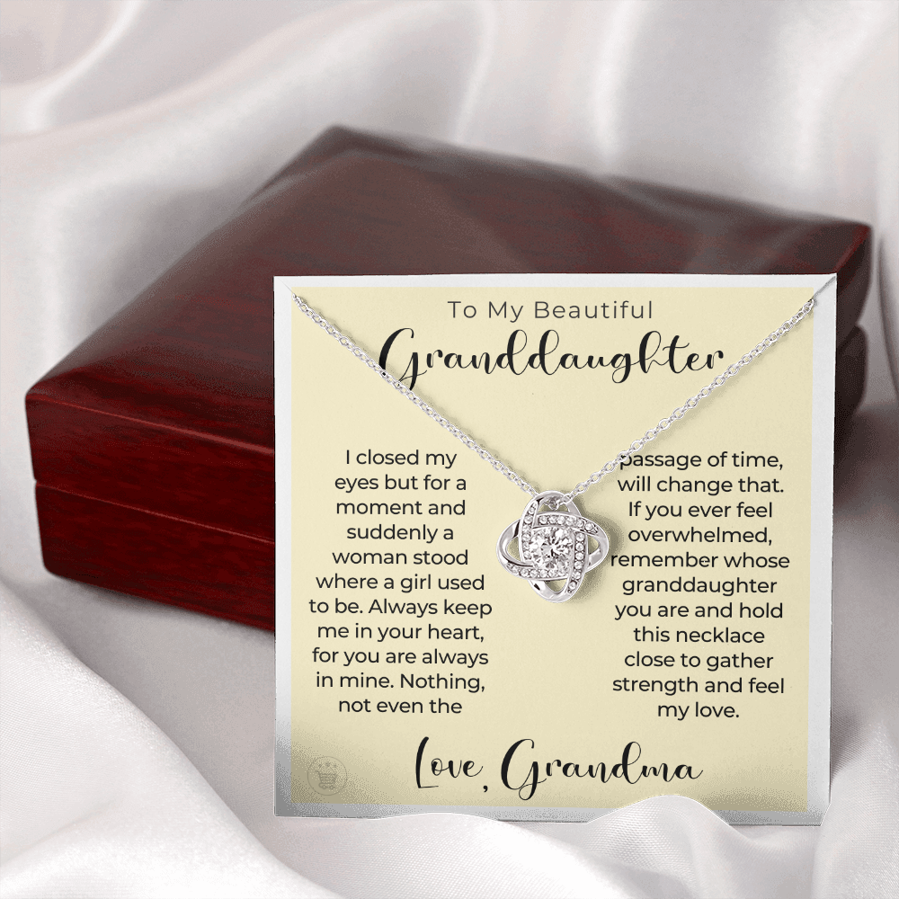 Give your granddaughter a gift she’ll love and remember, a beautiful necklace that captures your heart. Your granddaughter can wear it as a reminder of how much you love her and that you will always be there. The pendant necklace comes in an elegant gift box with a sweet message that will surely make your granddaughter feel loved and appreciated!