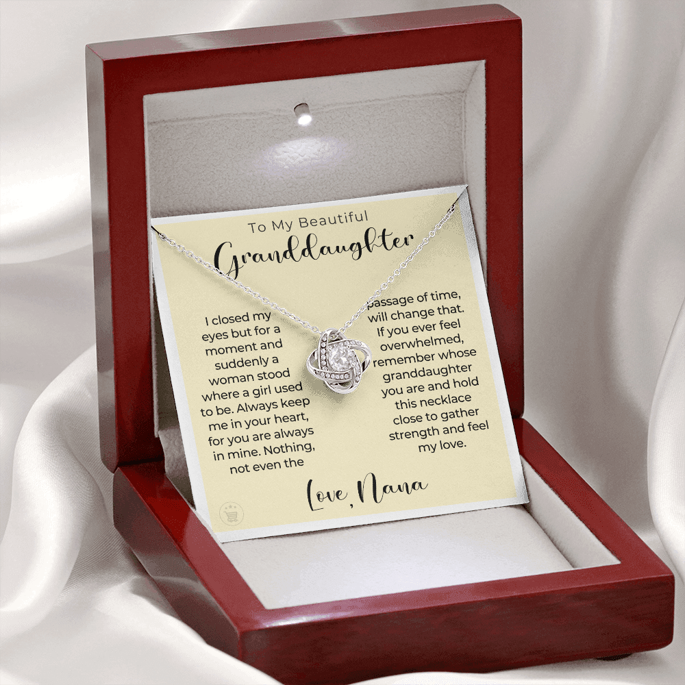 Give your granddaughter a gift she’ll love and remember, a beautiful necklace that captures your heart. Your granddaughter can wear it as a reminder of how much you love her and that you will always be there. The pendant necklace comes in an elegant gift box with a sweet message that will surely make your granddaughter feel loved and appreciated!