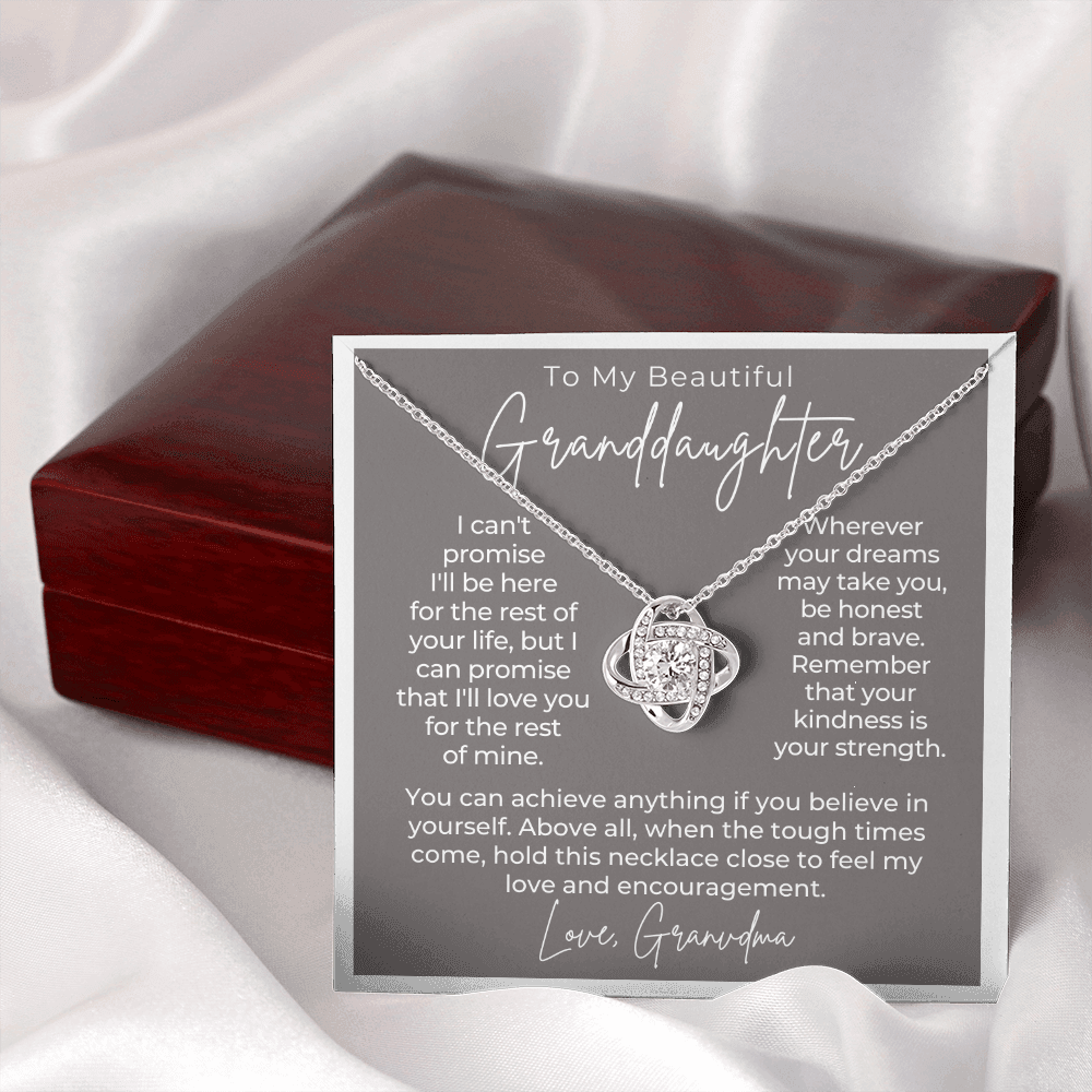 Give your granddaughter a gift she’ll love and remember, a beautiful necklace that captures your heart. Your granddaughter can wear it as a reminder of how much you love her and that you will always be there. The pendant necklace comes in an elegant gift box with a sweet message that will surely make your granddaughter feel loved and appreciated!