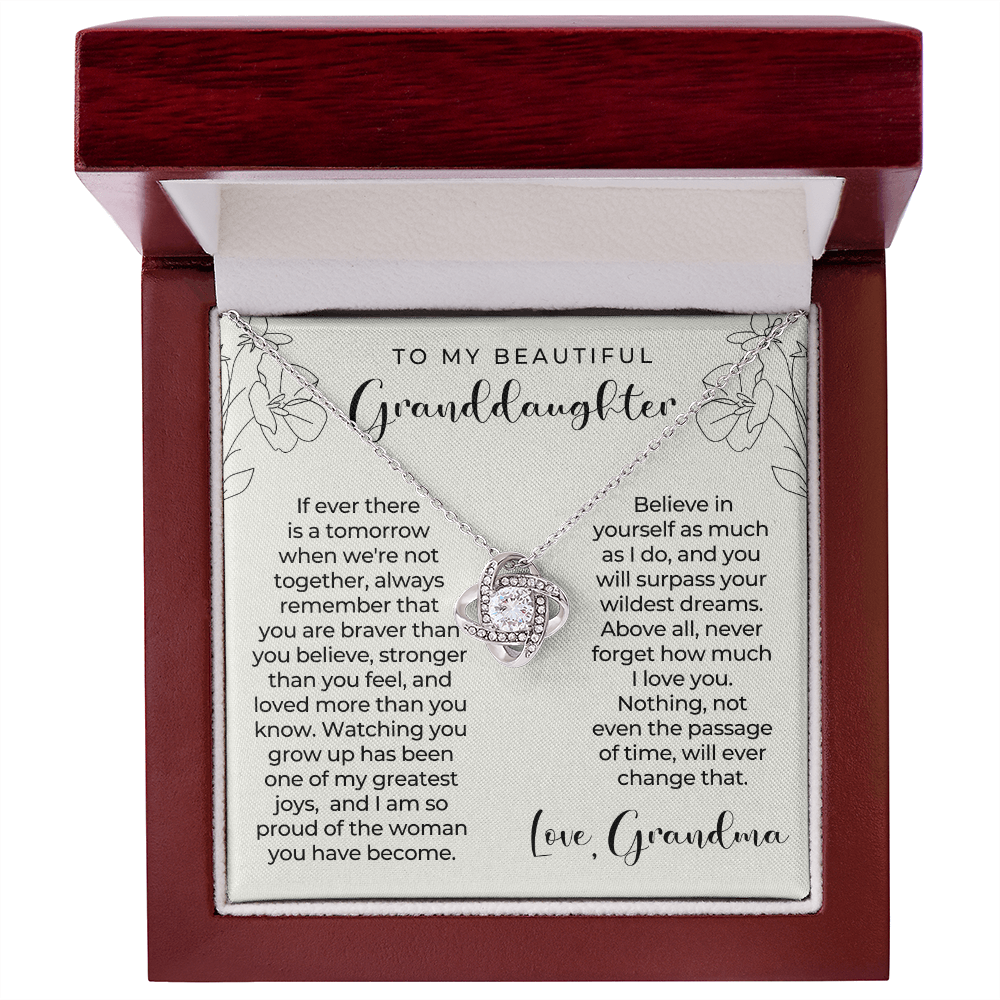 Give your granddaughter a gift she’ll love and remember, a beautiful necklace that captures your heart. Your granddaughter can wear it as a reminder of how much you love her and that you will always be there. The pendant necklace comes in an elegant gift box with a sweet message that will surely make your granddaughter feel loved and appreciated!