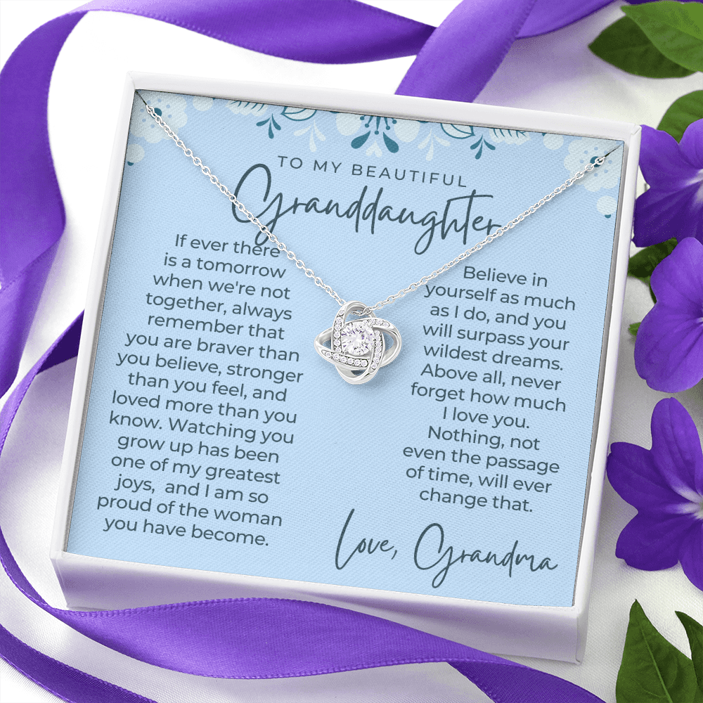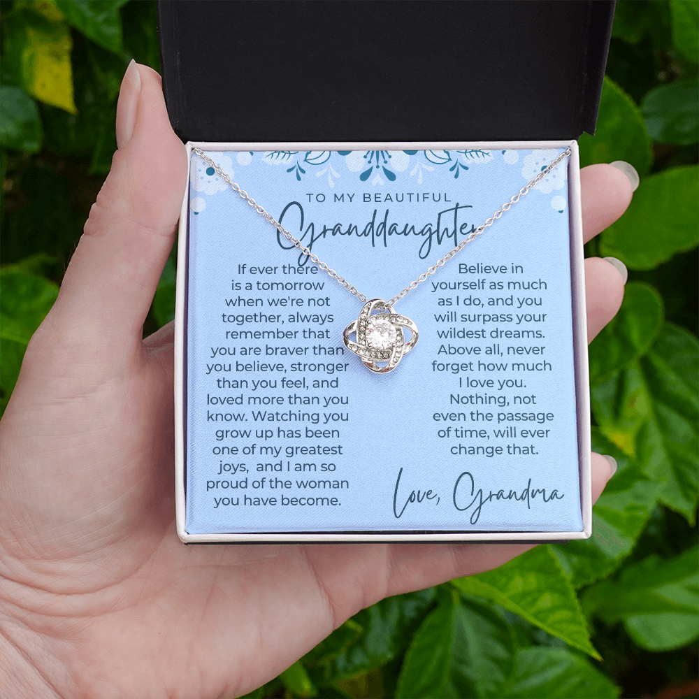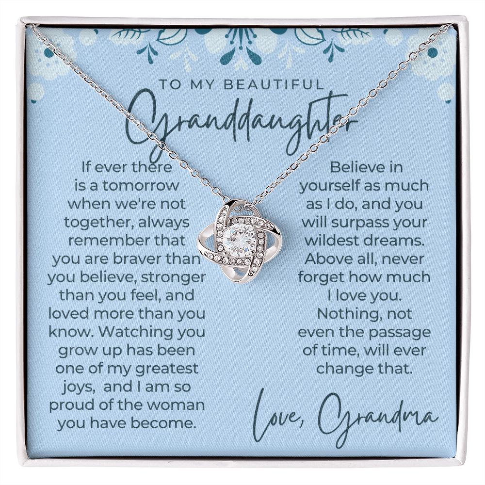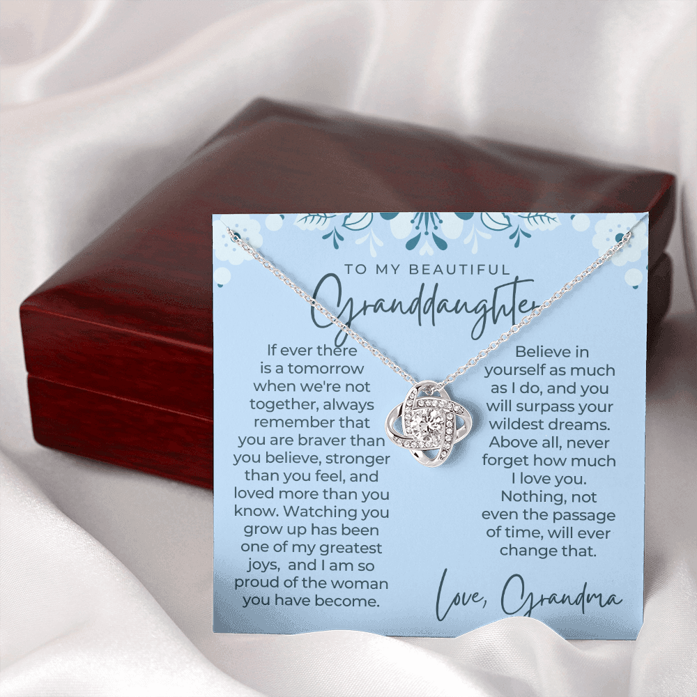 Give your granddaughter a gift she’ll love and remember, a beautiful necklace that captures your heart. Your granddaughter can wear it as a reminder of how much you love her and that you will always be there. The pendant necklace comes in an elegant gift box with a sweet message that will surely make your granddaughter feel loved and appreciated!