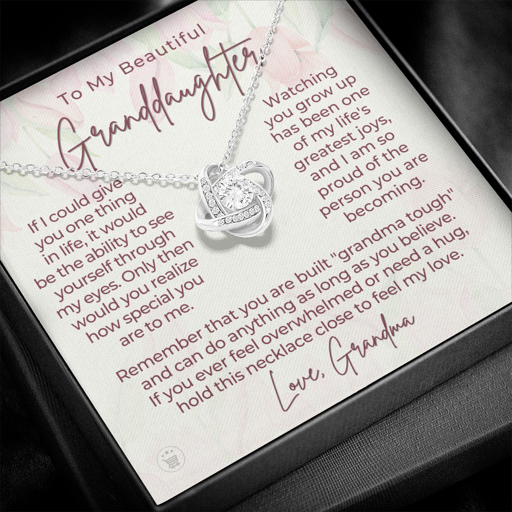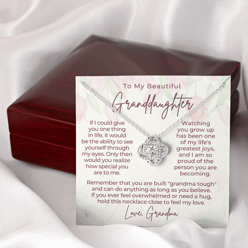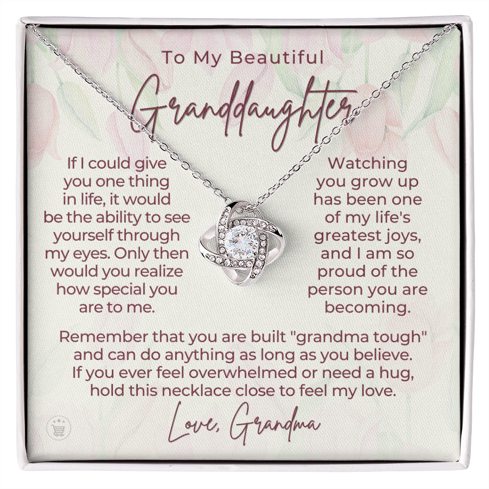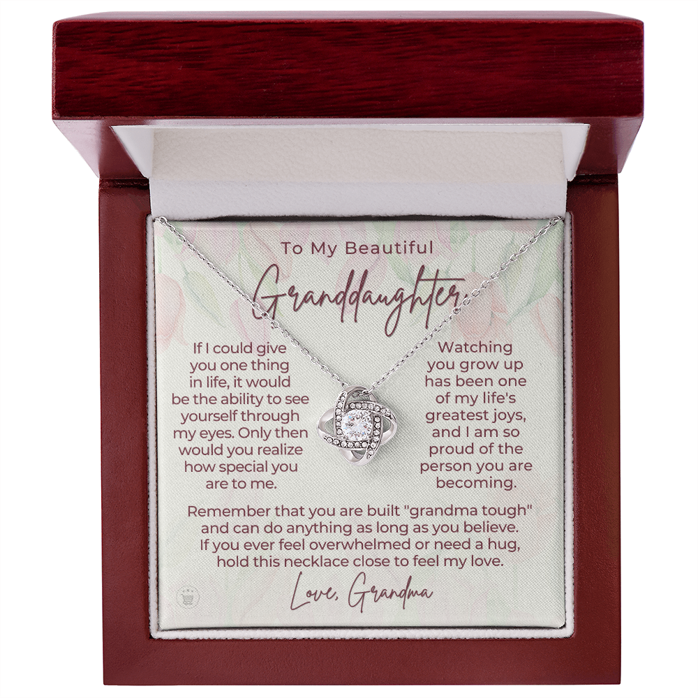 If I could give you one thing in life, it would be the ability to see yourself through my eyes. Only then would you realize how special you are to me. Watching you grow up has been one of my life's greatest joys, and I am so proud of the person you are becoming. Remember that you are built "grandma tough" and can do anything as long as you believe. If you ever feel overwhelmed or need a hug, hold this necklace close to feel my love.