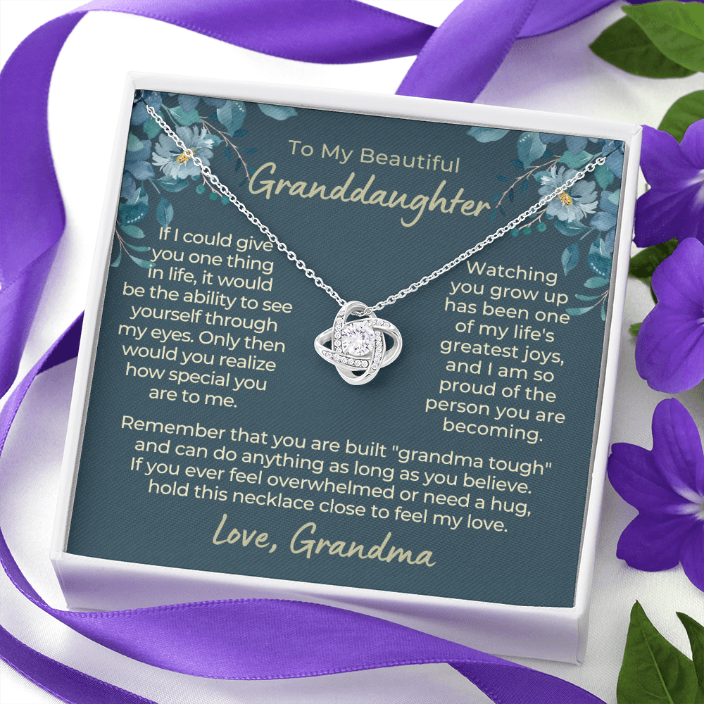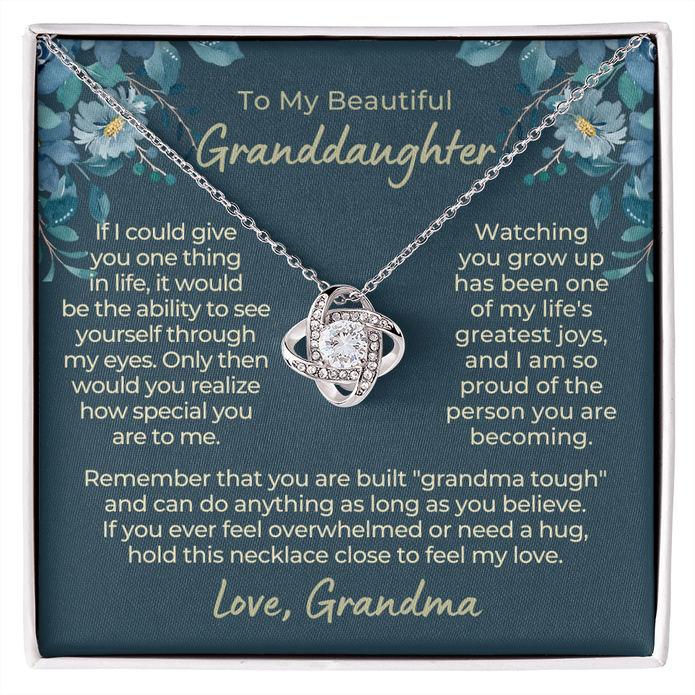 If I could give you one thing in life, it would be the ability to see yourself through my eyes. Only then would you realize how special you are to me. Watching you grow up has been one of my life's greatest joys, and I am so proud of the person you are becoming. Remember that you are built "grandma tough" and can do anything as long as you believe. If you ever feel overwhelmed or need a hug, hold this necklace close to feel my love.