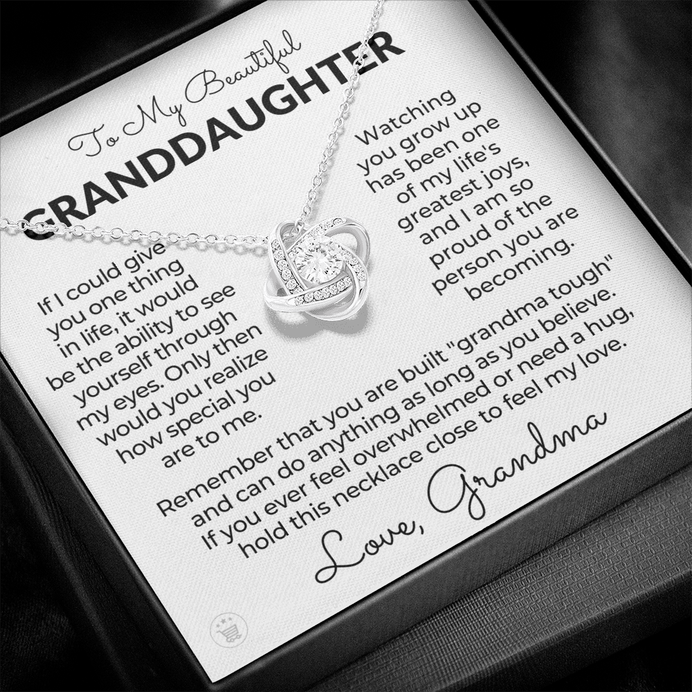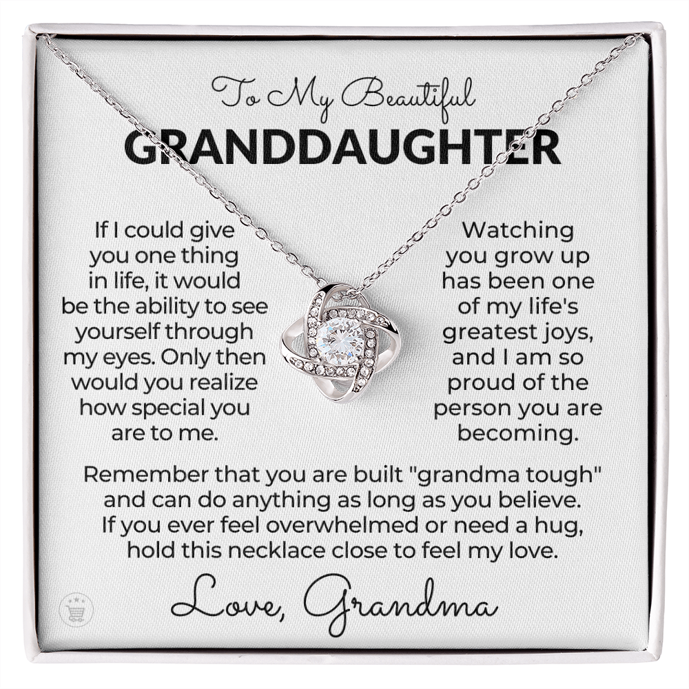 If I could give you one thing in life, it would be the ability to see yourself through my eyes. Only then would you realize how special you are to me. Watching you grow up has been one of my life's greatest joys, and I am so proud of the person you are becoming. Remember that you are built "grandma tough" and can do anything as long as you believe. If you ever feel overwhelmed or need a hug, hold this necklace close to feel my love.