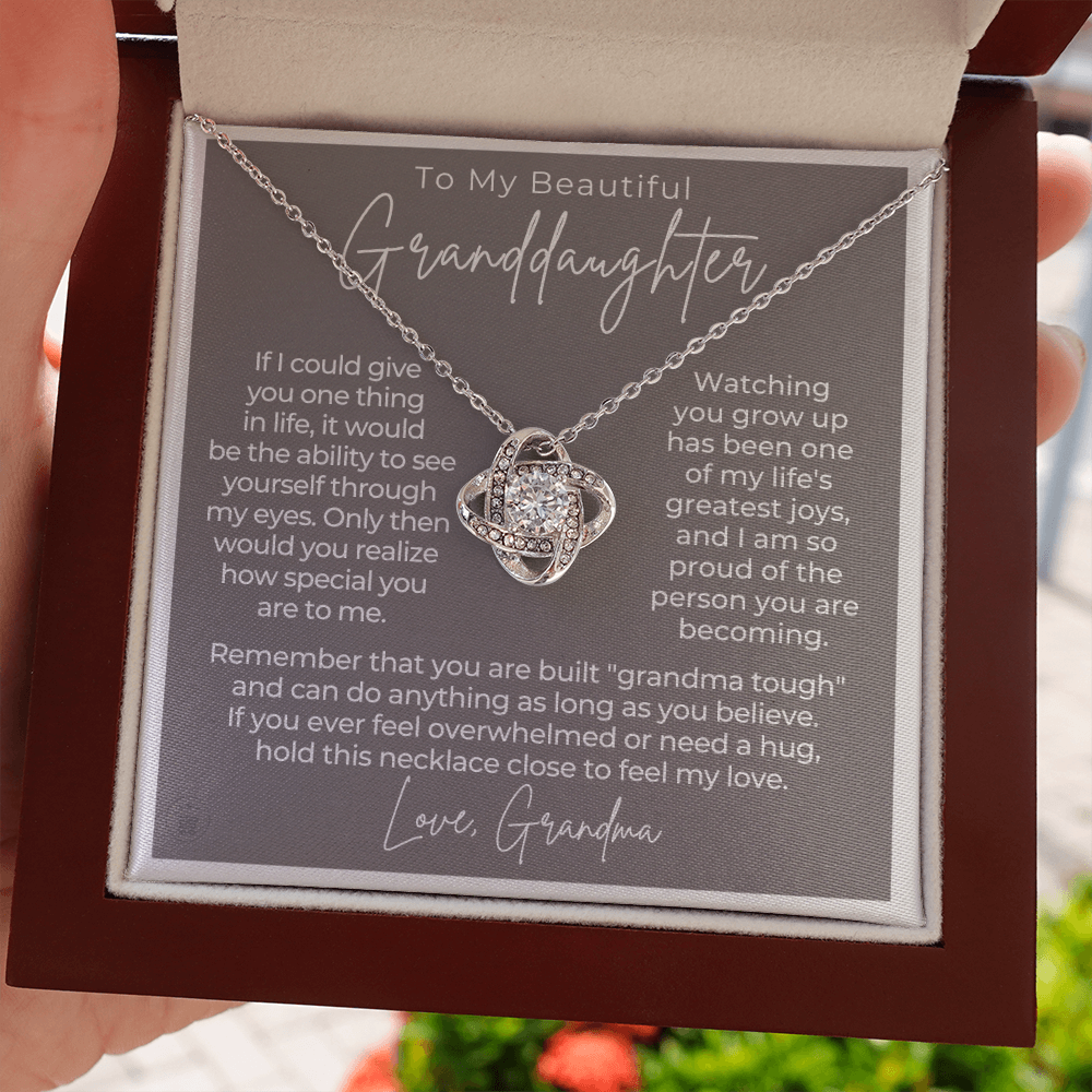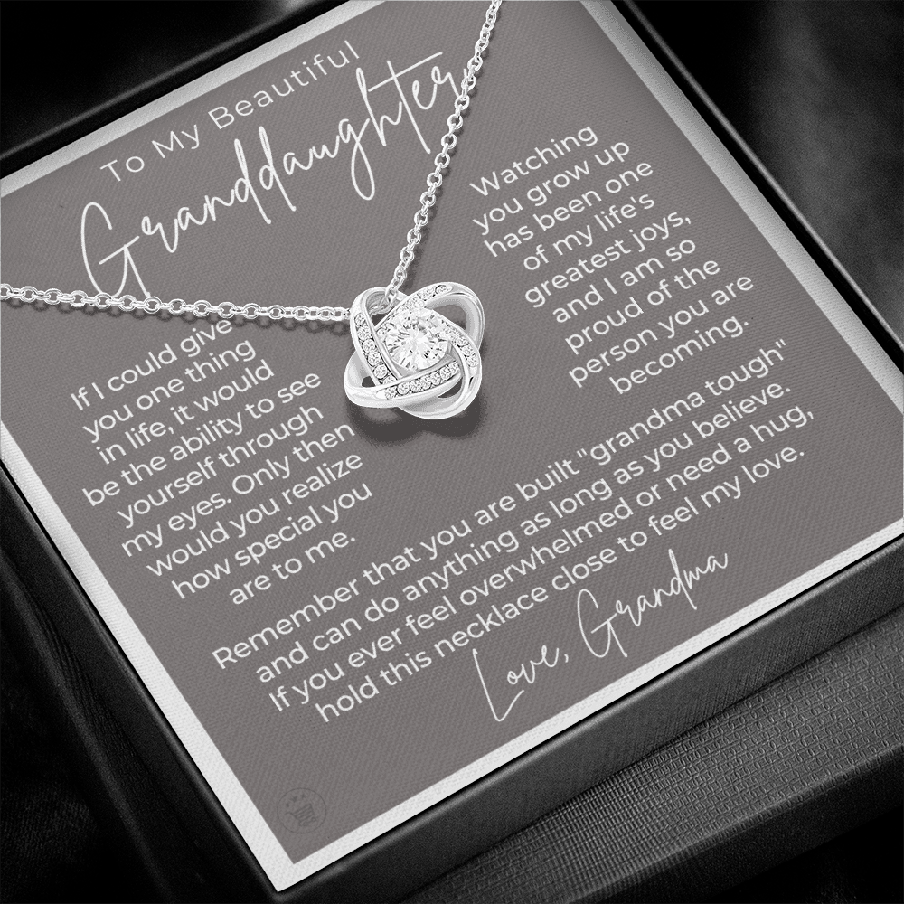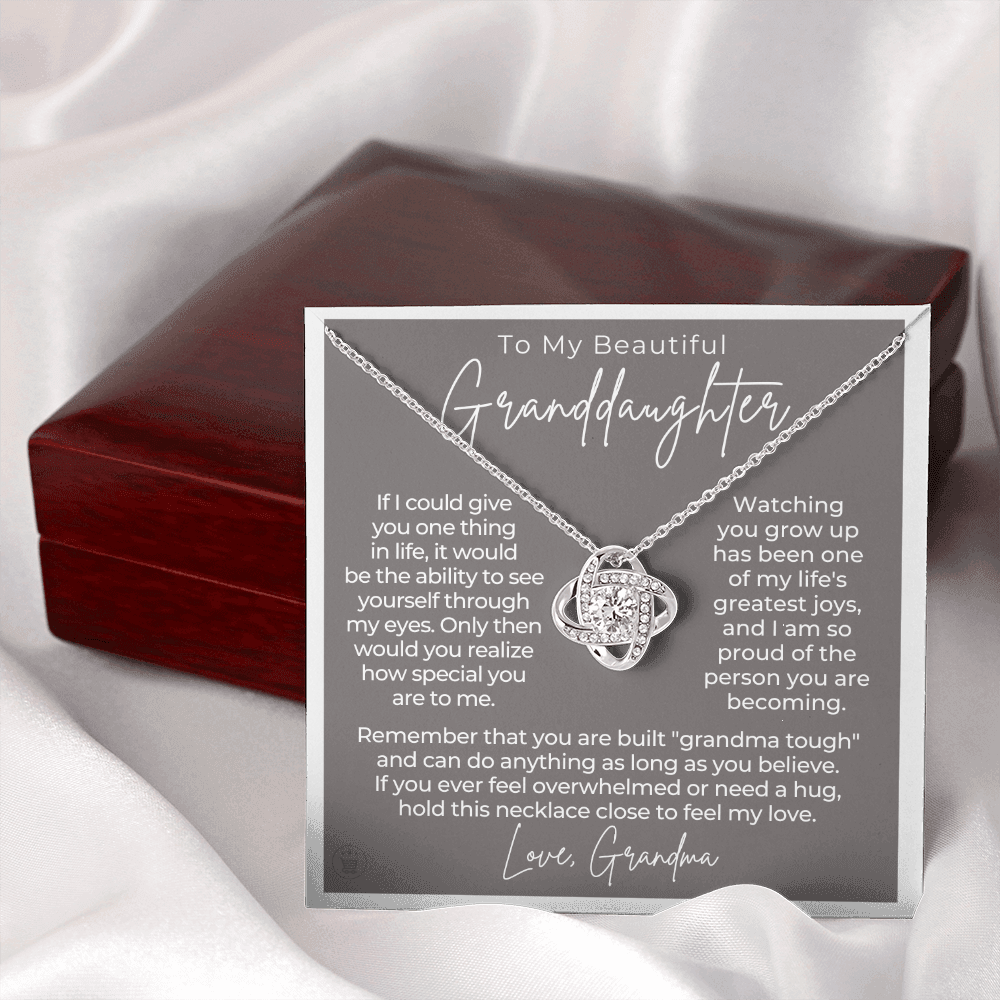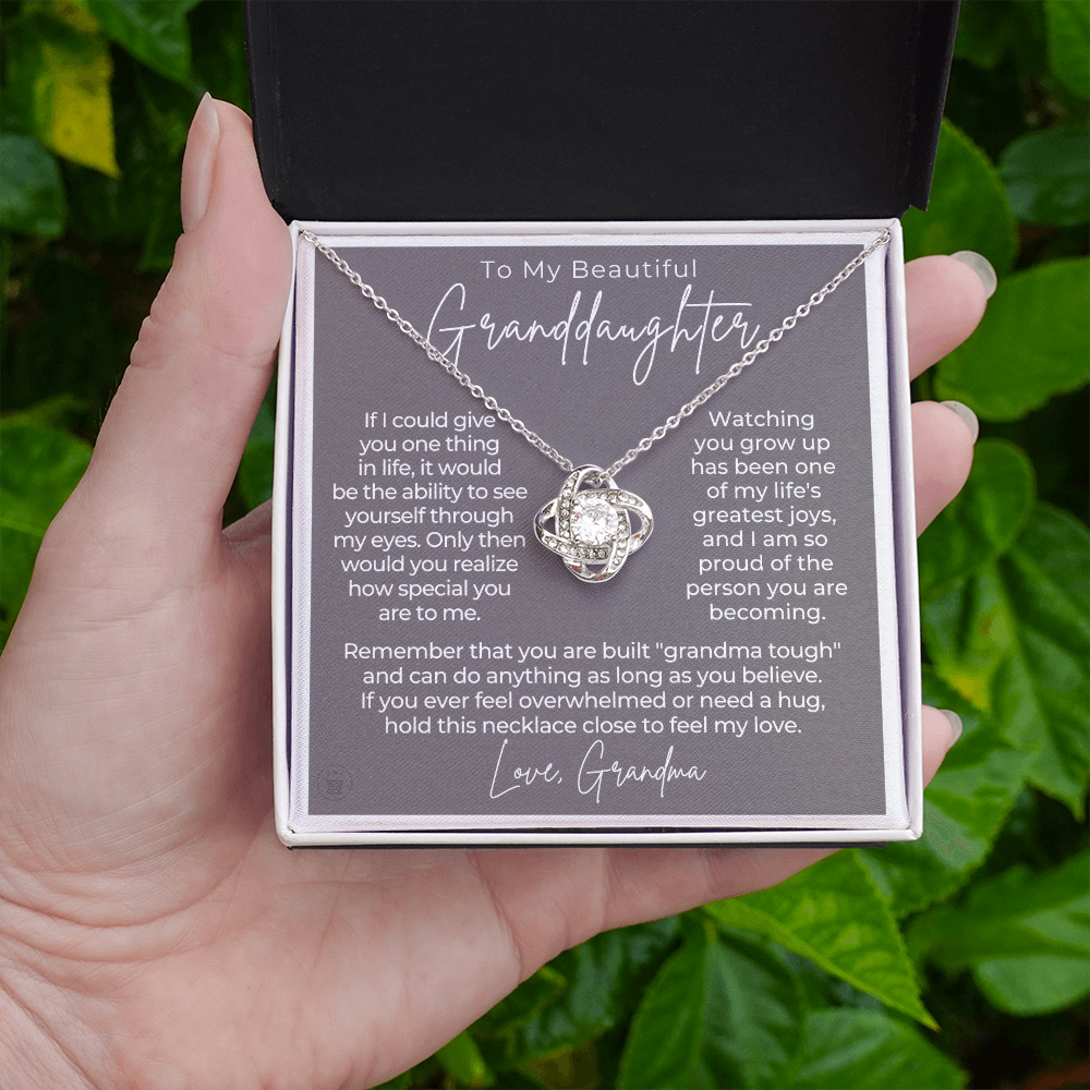 If I could give you one thing in life, it would be the ability to see yourself through my eyes. Only then would you realize how special you are to me. Watching you grow up has been one of my life's greatest joys, and I am so proud of the person you are becoming. Remember that you are built "grandma tough" and can do anything as long as you believe. If you ever feel overwhelmed or need a hug, hold this necklace close to feel my love.