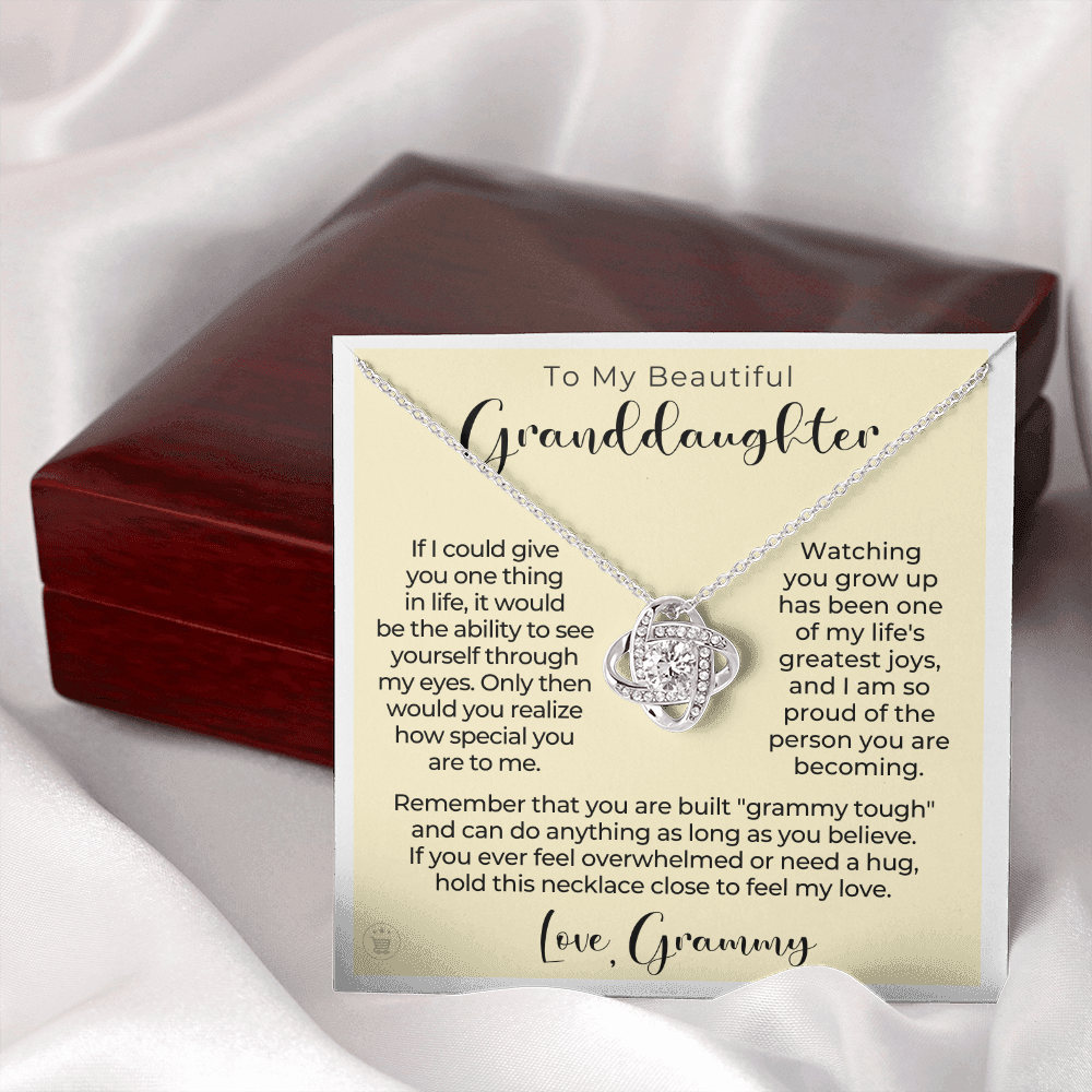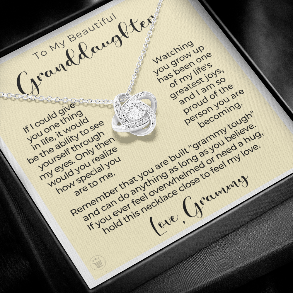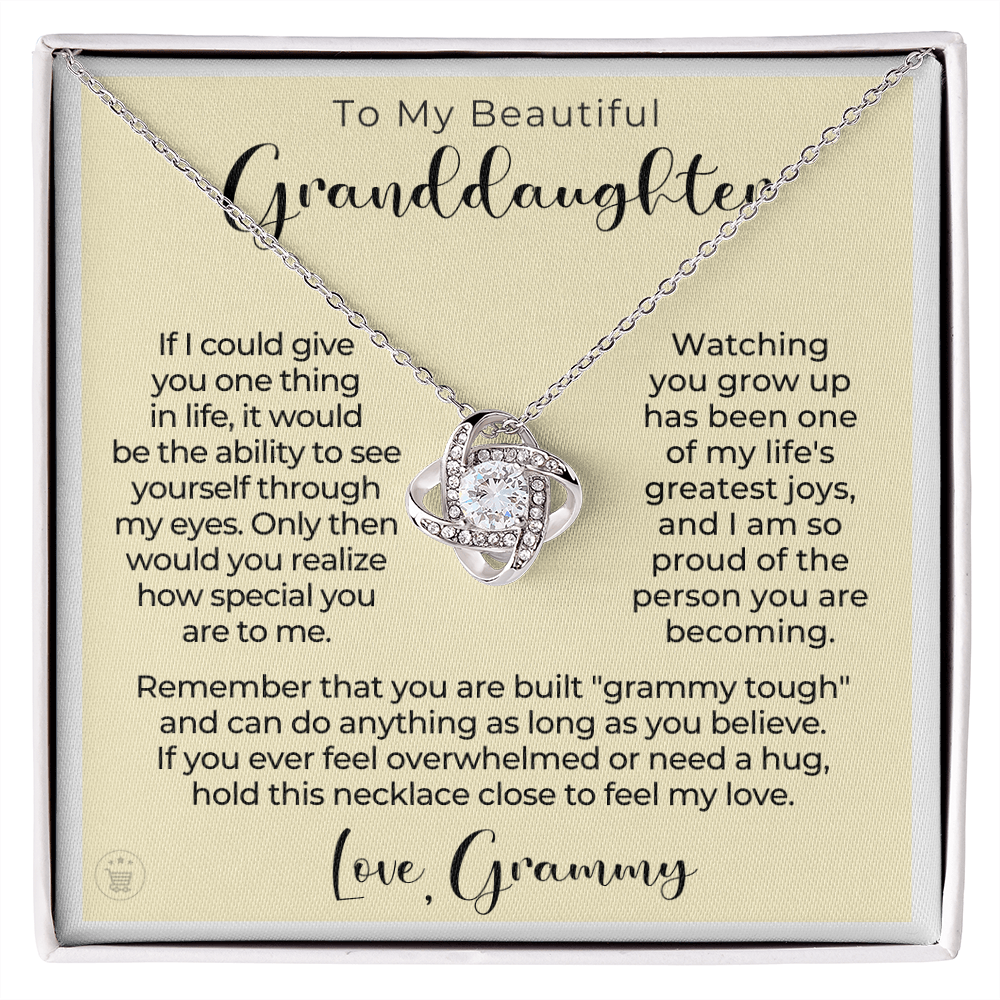 If I could give you one thing in life, it would be the ability to see yourself through my eyes. Only then would you realize how special you are to me. Watching you grow up has been one of my life's greatest joys, and I am so proud of the person you are becoming. Remember that you are built "grammy tough" and can do anything as long as you believe. If you ever feel overwhelmed or need a hug, hold this necklace close to feel my love.