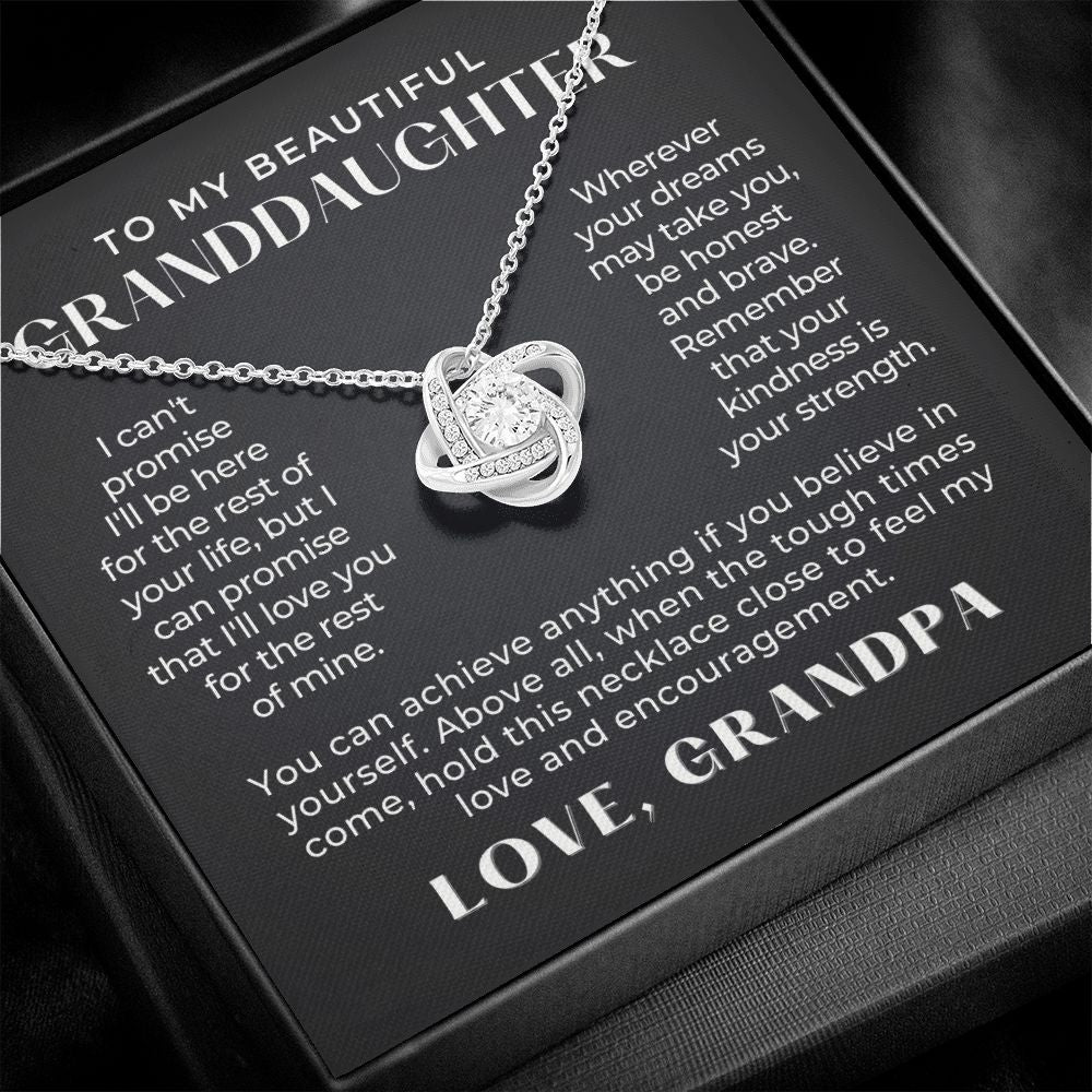 Give your granddaughter a gift she’ll love and remember, a beautiful necklace that captures your heart. Your granddaughter can wear it as a reminder of how much you love her and that you will always be there. The pendant necklace comes in an elegant gift box with a sweet message that will surely make your granddaughter feel loved and appreciated!